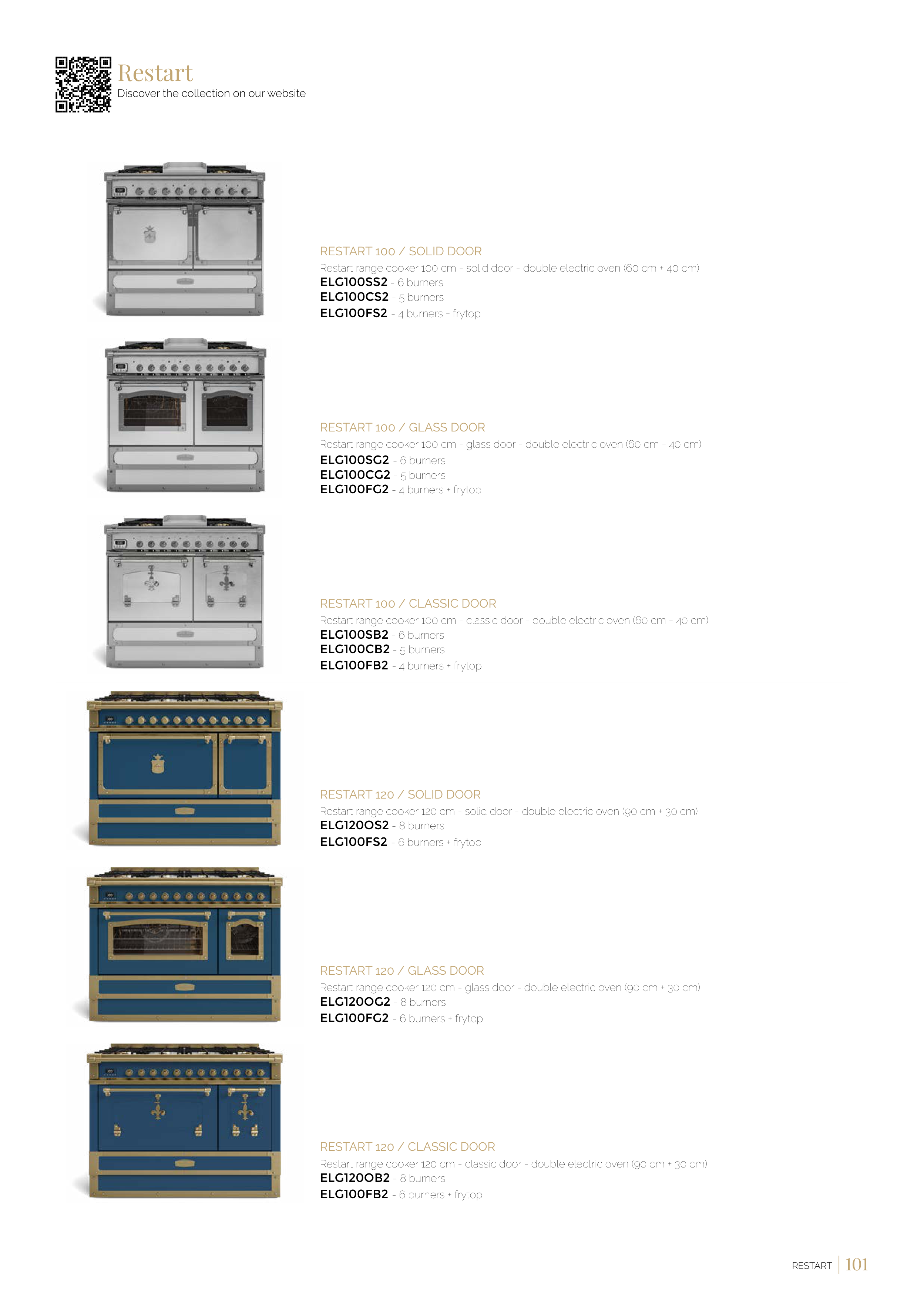 Restart range cooker 120 cm - classic door - double electric oven (90 cm + 30 cm)