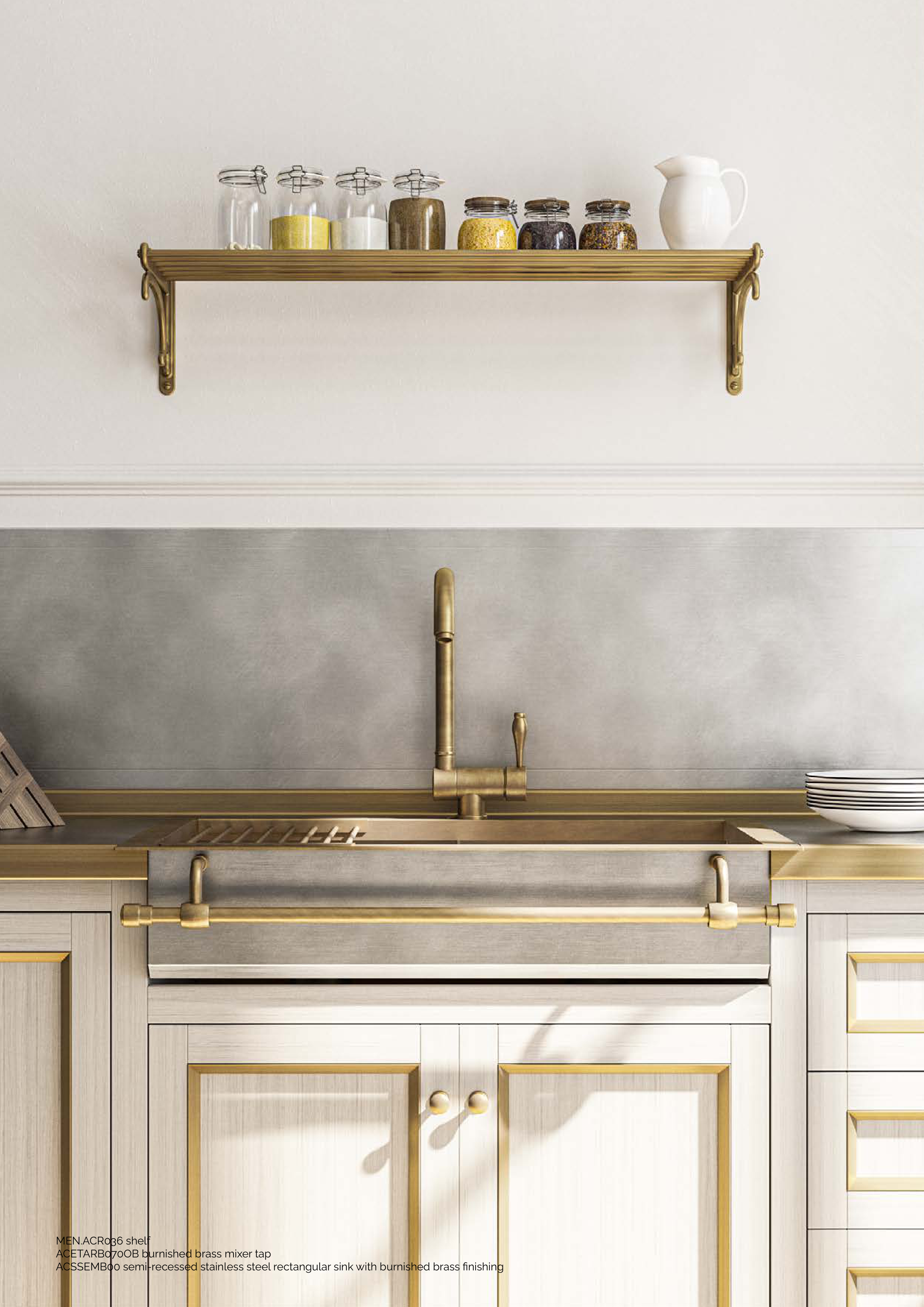 ACSSEMB00 semi-recessed stainless steel rectangular sink with burnished brass finishing
