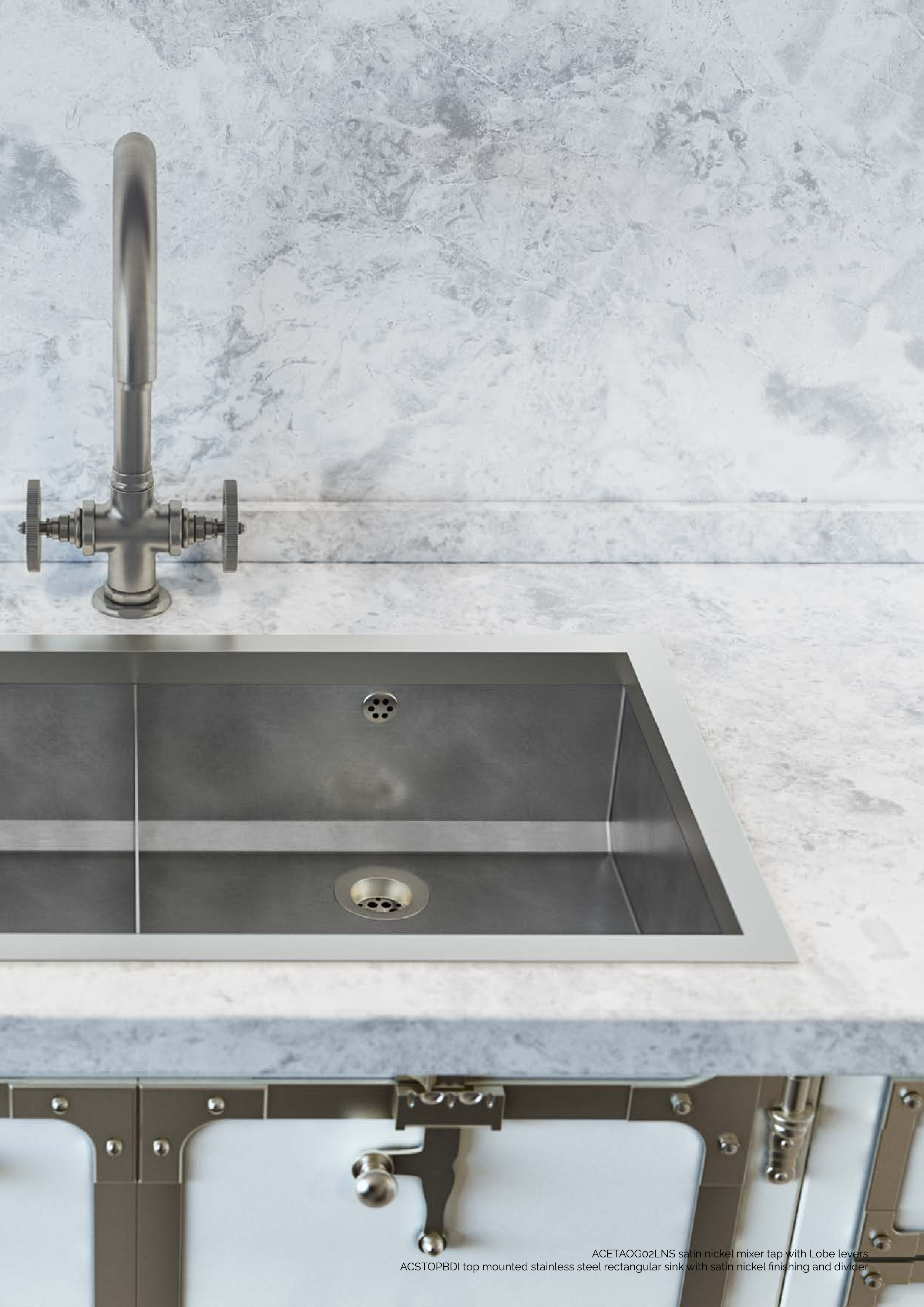 ACETAOG02LNS satin nickel mixer tap with Lobe levers