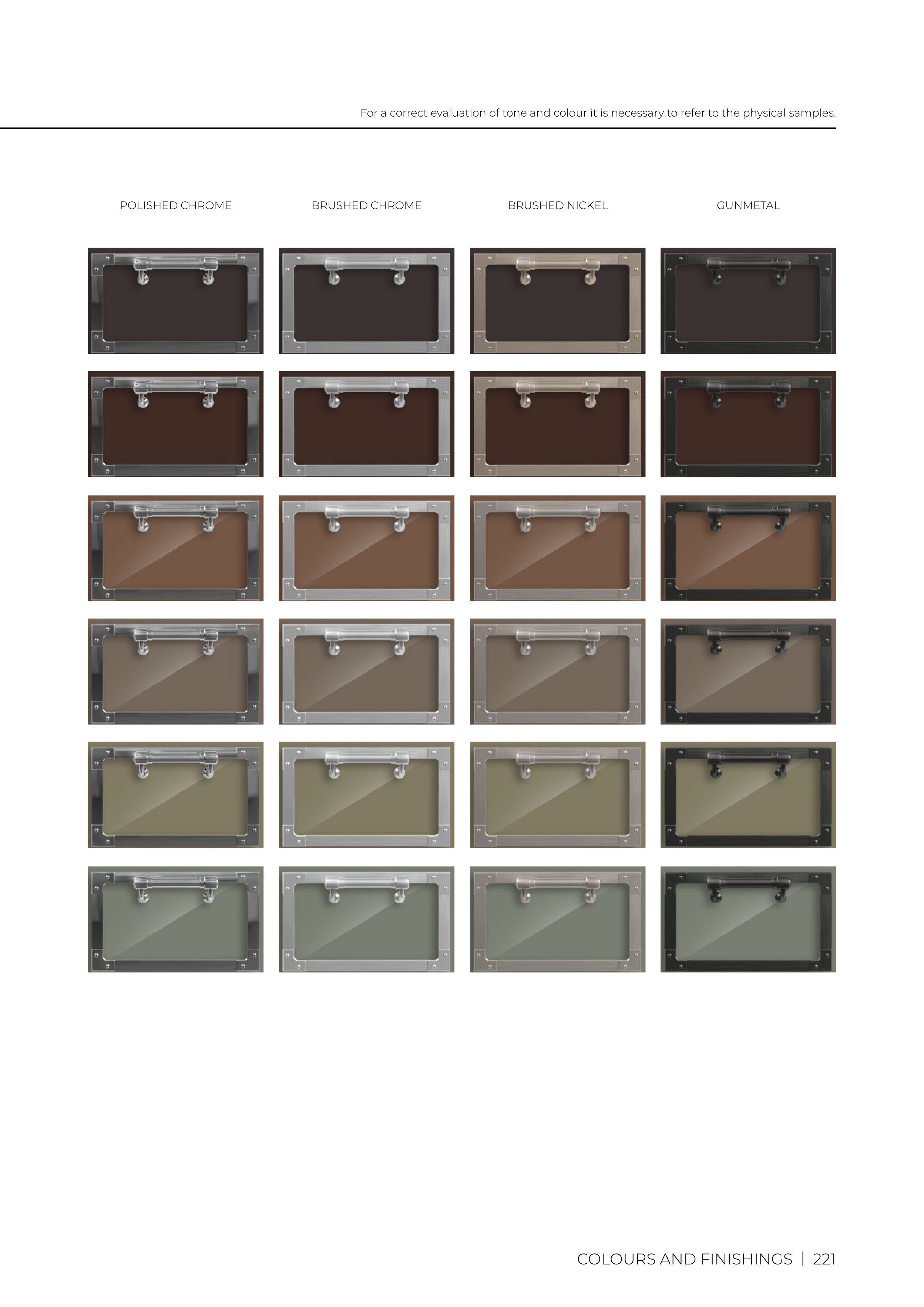 COLOURS AND FINISHINGS | 221