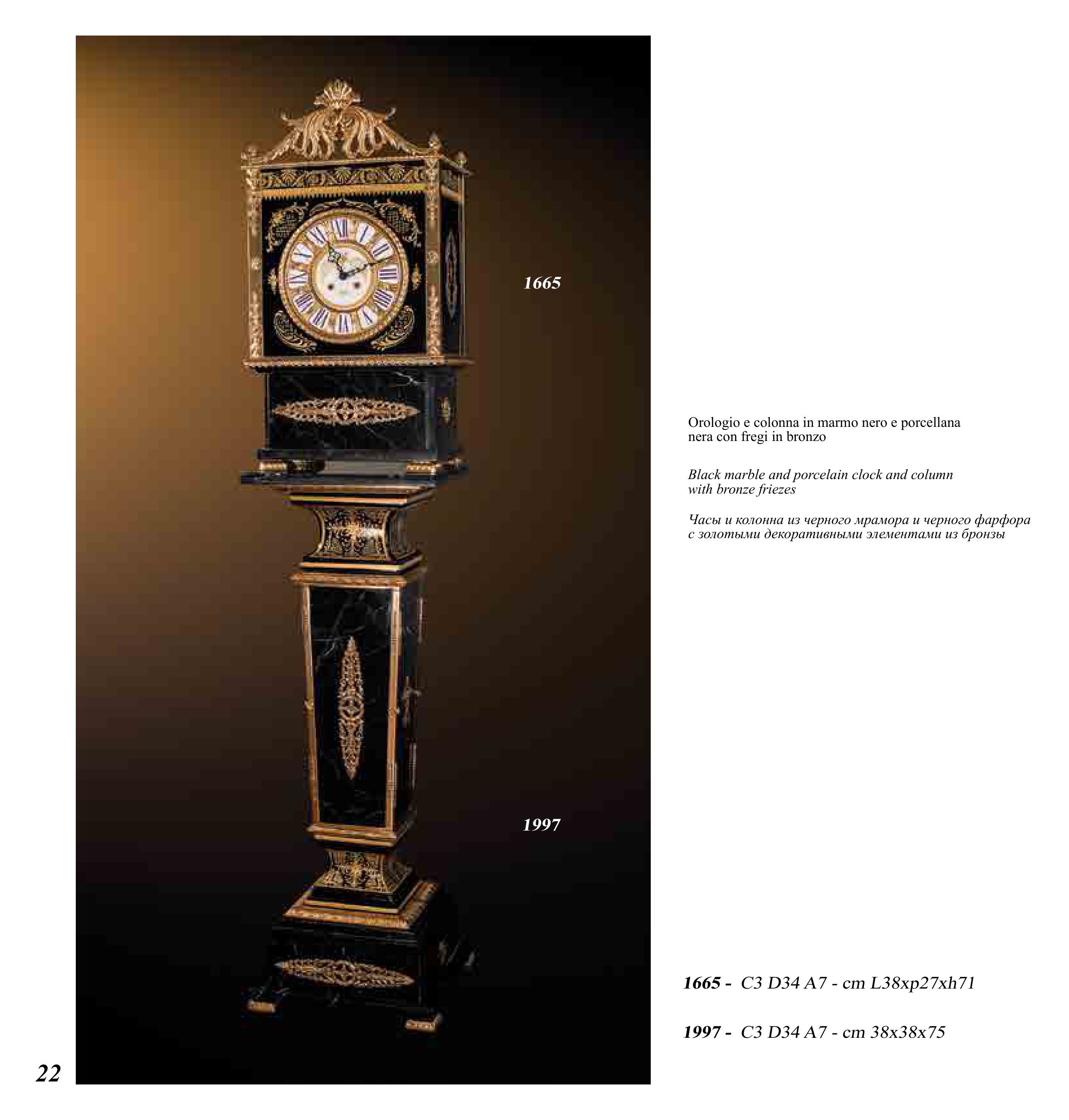 Часы и колонна из черного мрамора и черного фарфора