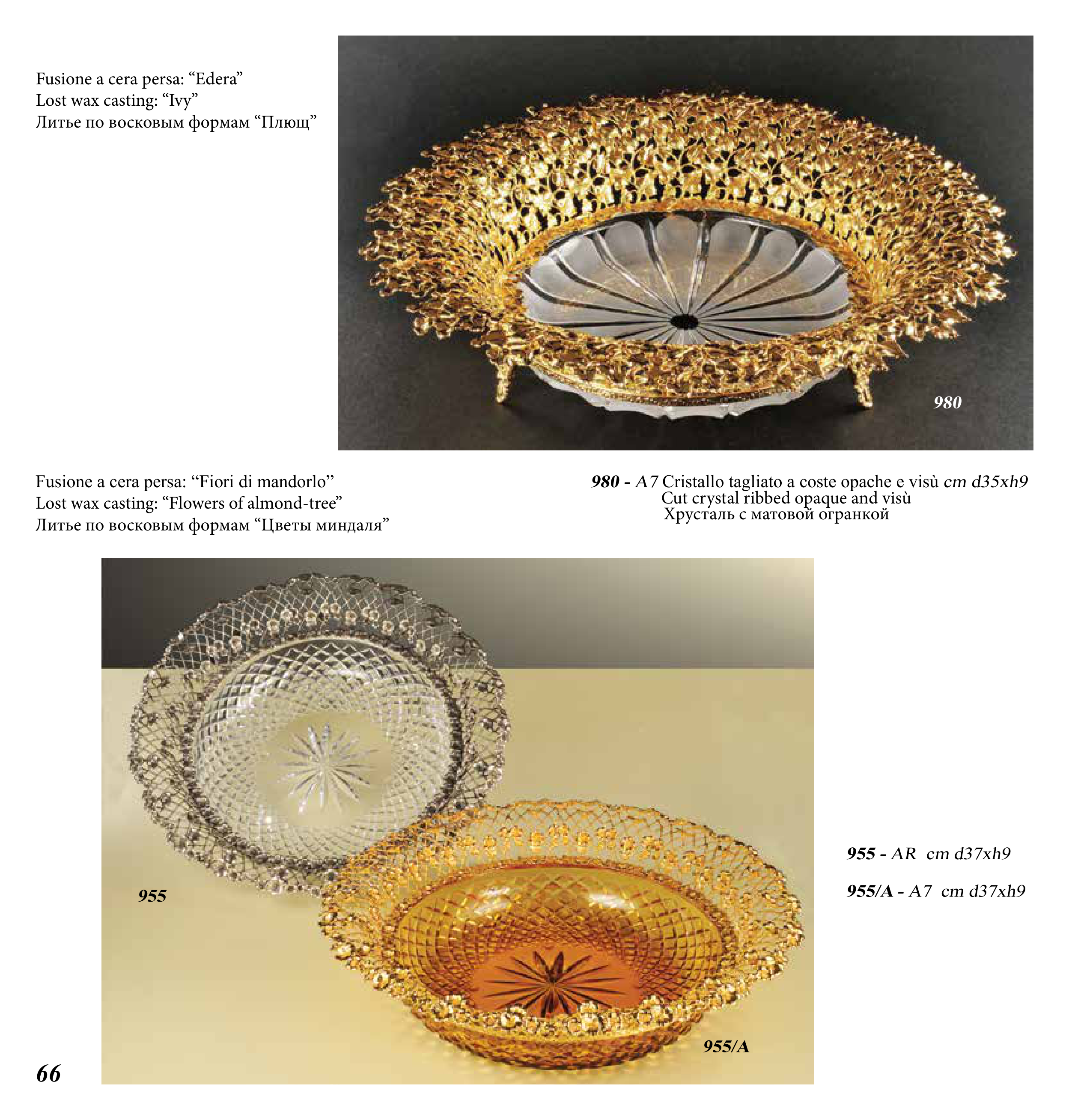980 - A7 Cristallo tagliato a coste opache e visù cm d35xh9