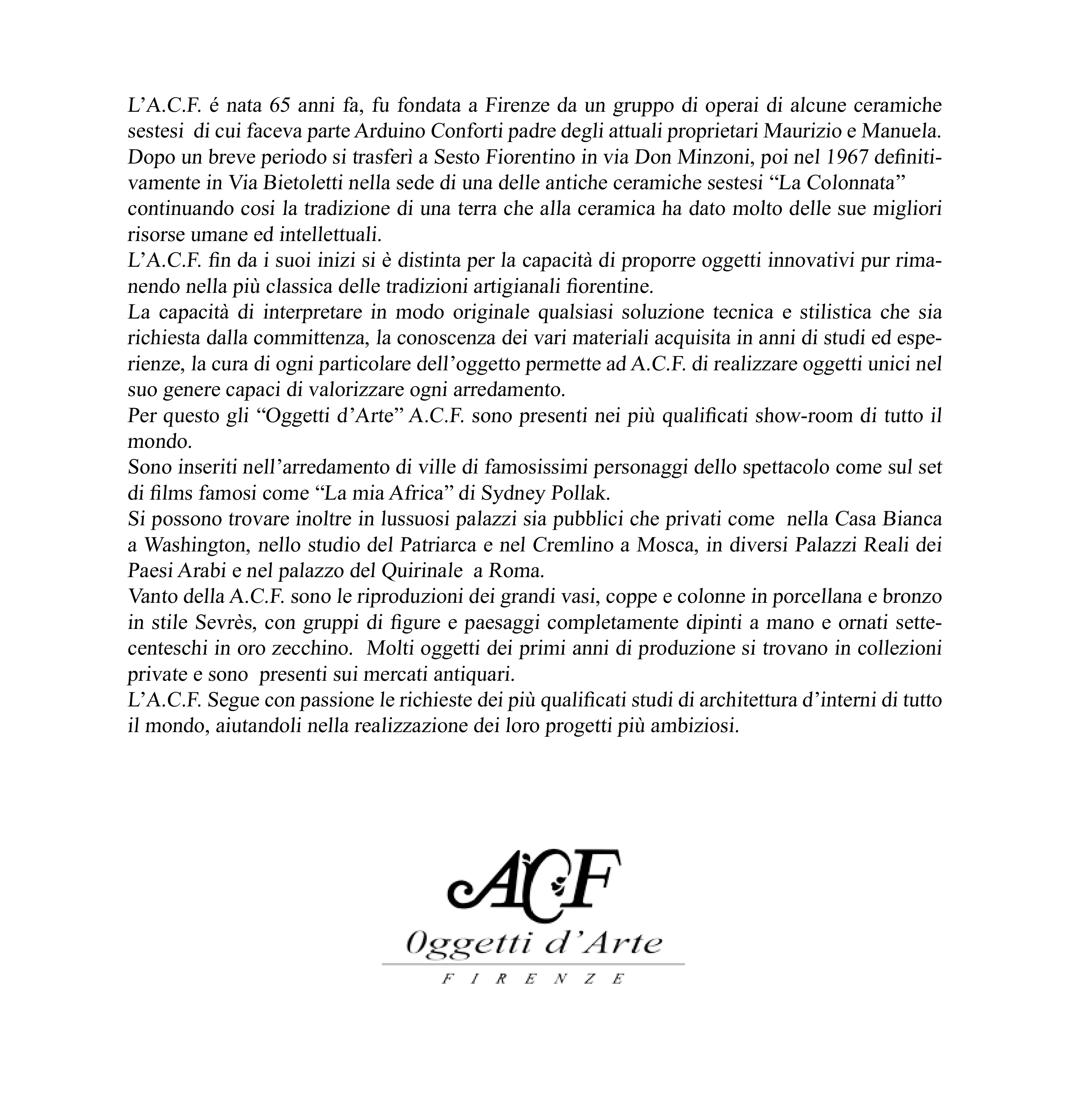 Per questo gli “Oggetti d’Arte” A.C.F. sono presenti nei più qualificati show-room di tutto il