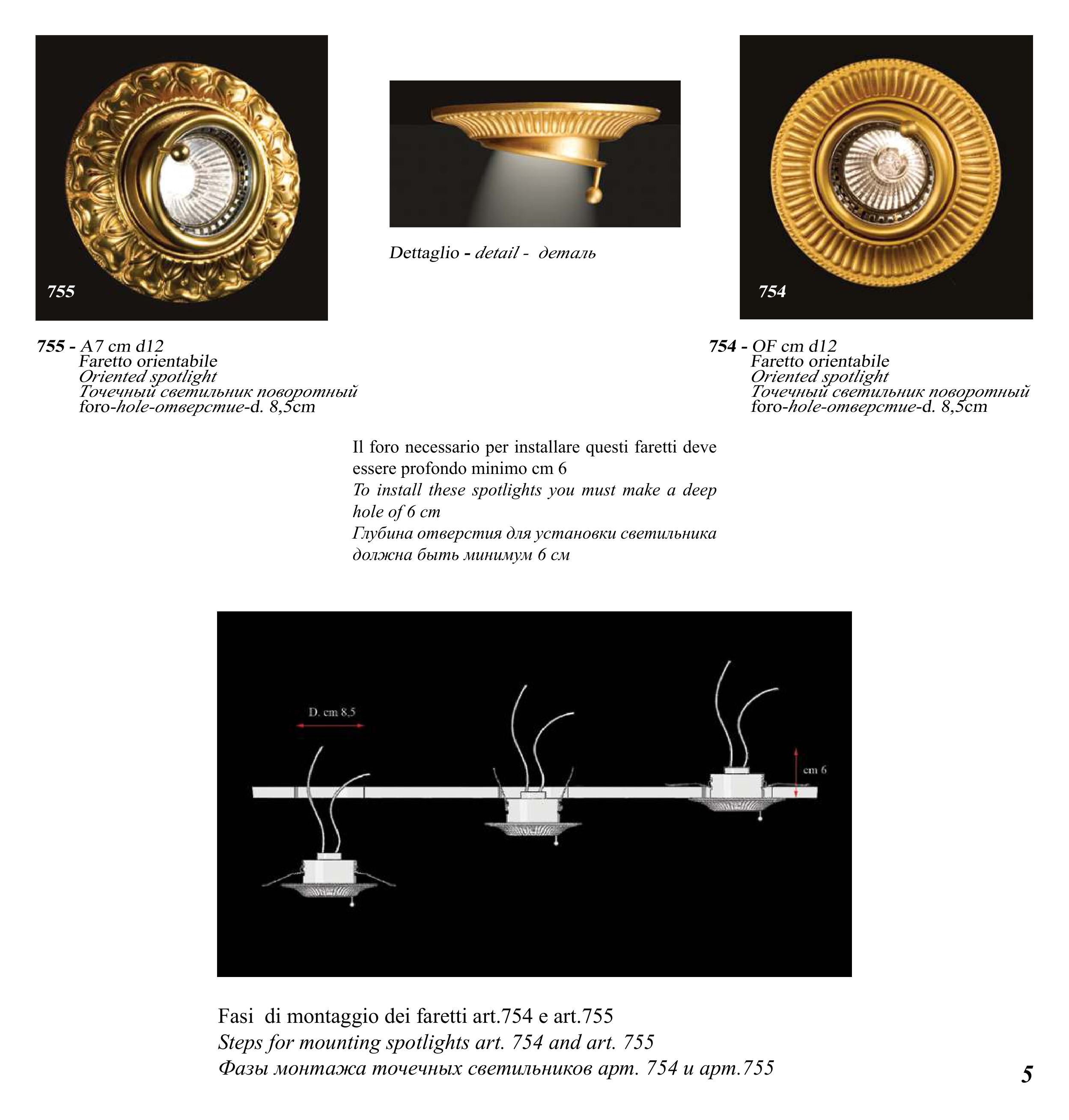 Steps for mounting spotlights art. 754 and art. 755