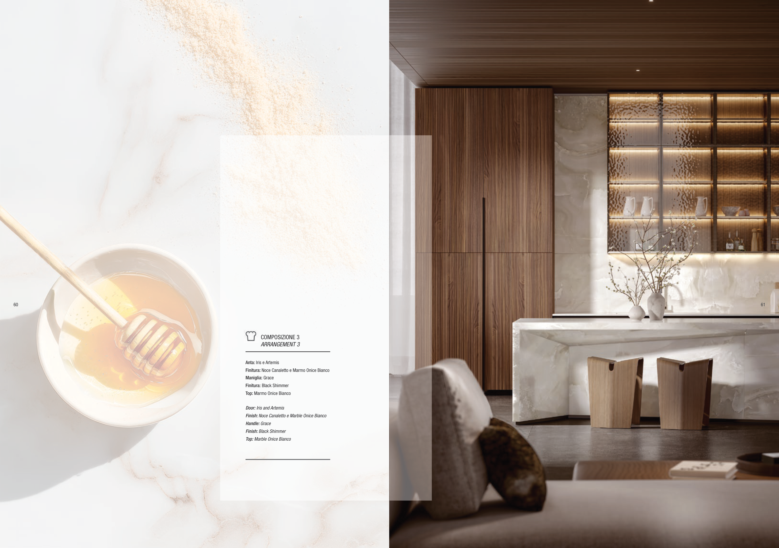 Finish: Noce Canaletto e Marble Onice Bianco