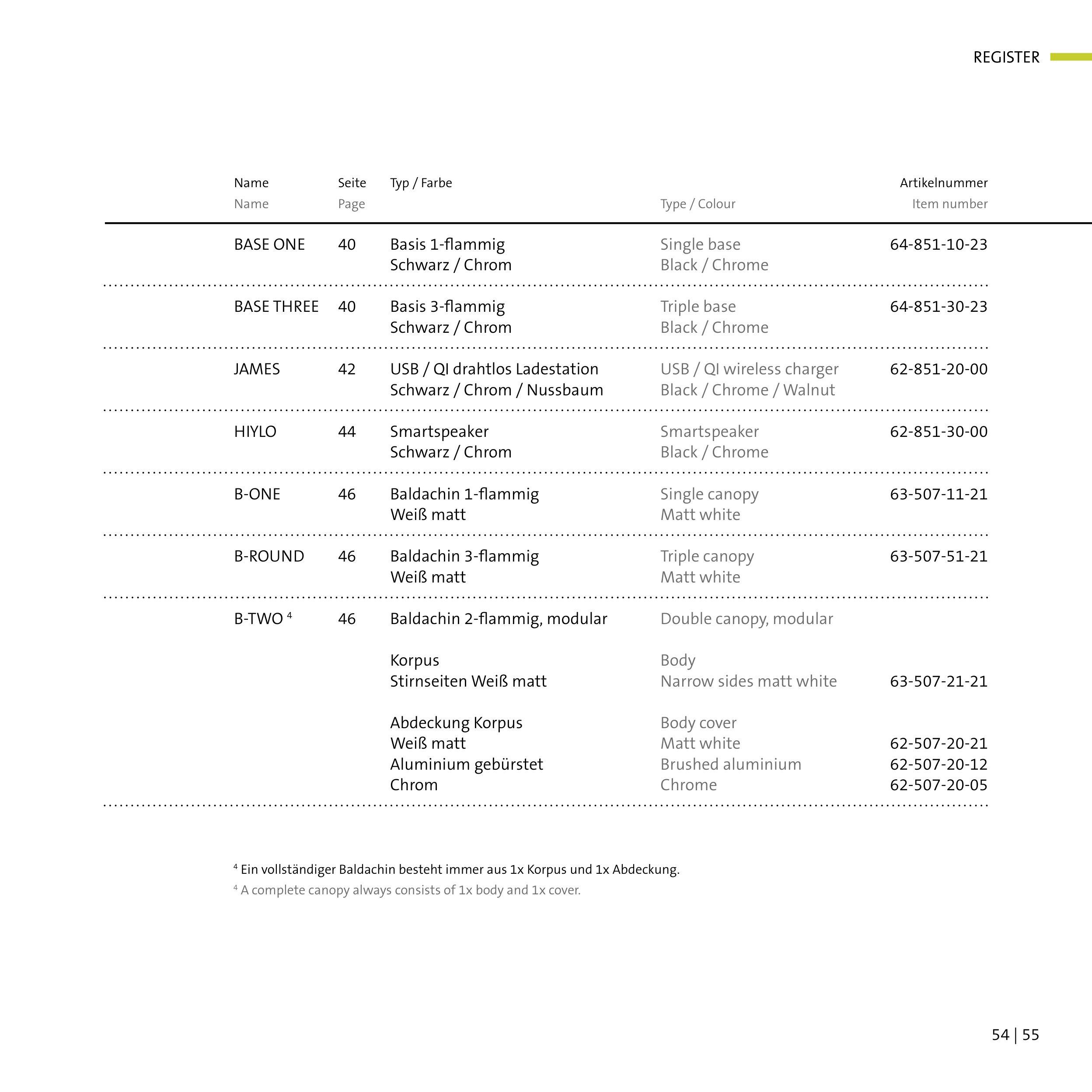 4 Ein vollständiger Baldachin besteht immer aus 1x Korpus und 1x Abdeckung.