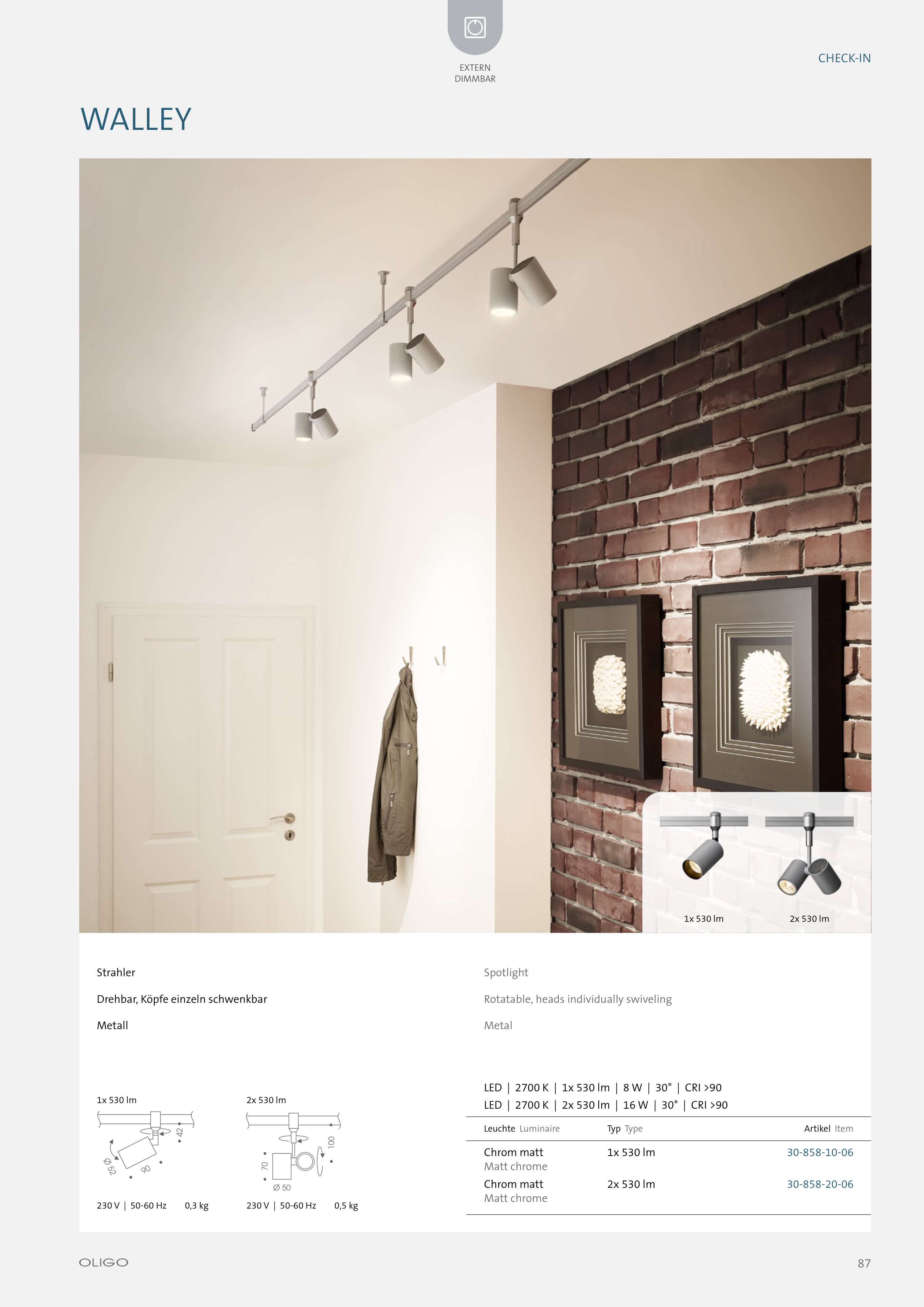 LED | 2700 K | 2x 530 lm | 16 W | 30° | CRI >90
