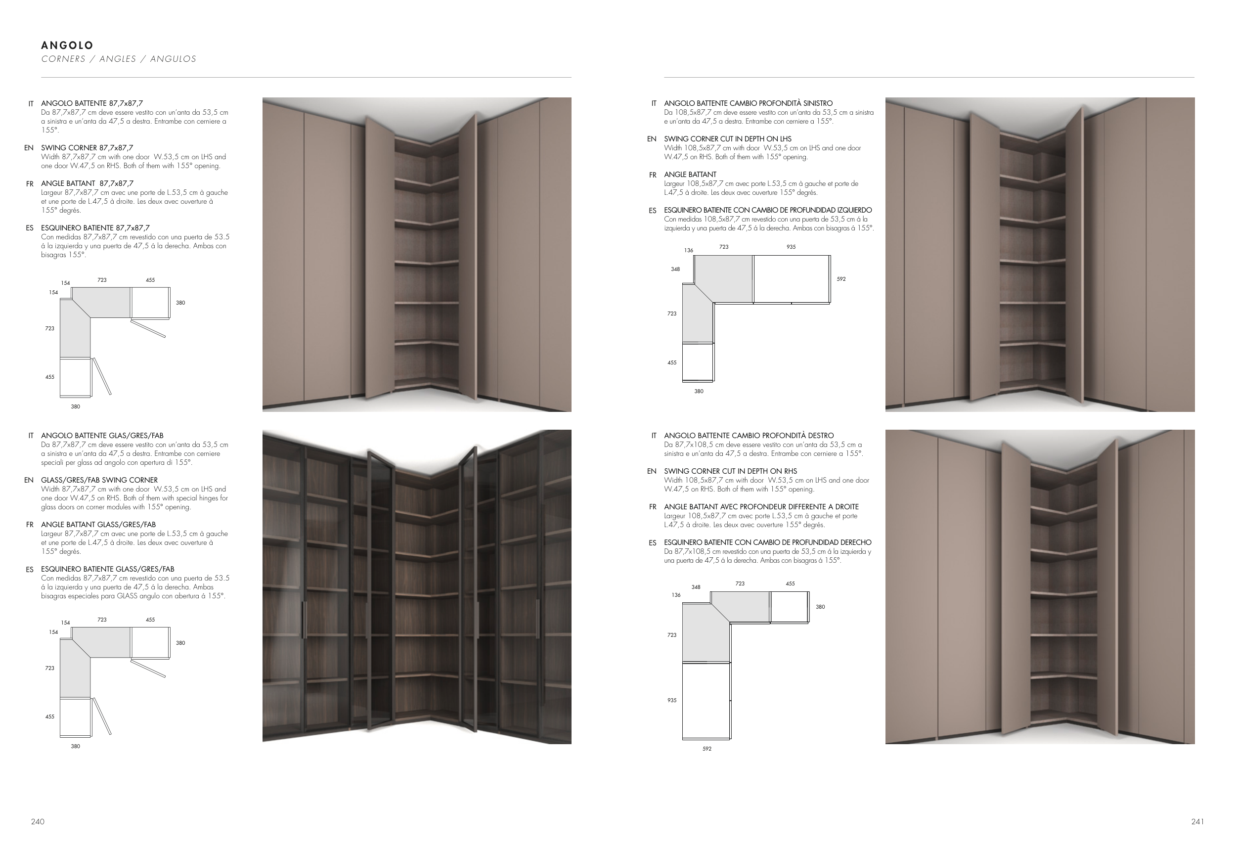glass doors on corner modules with 155° opening.