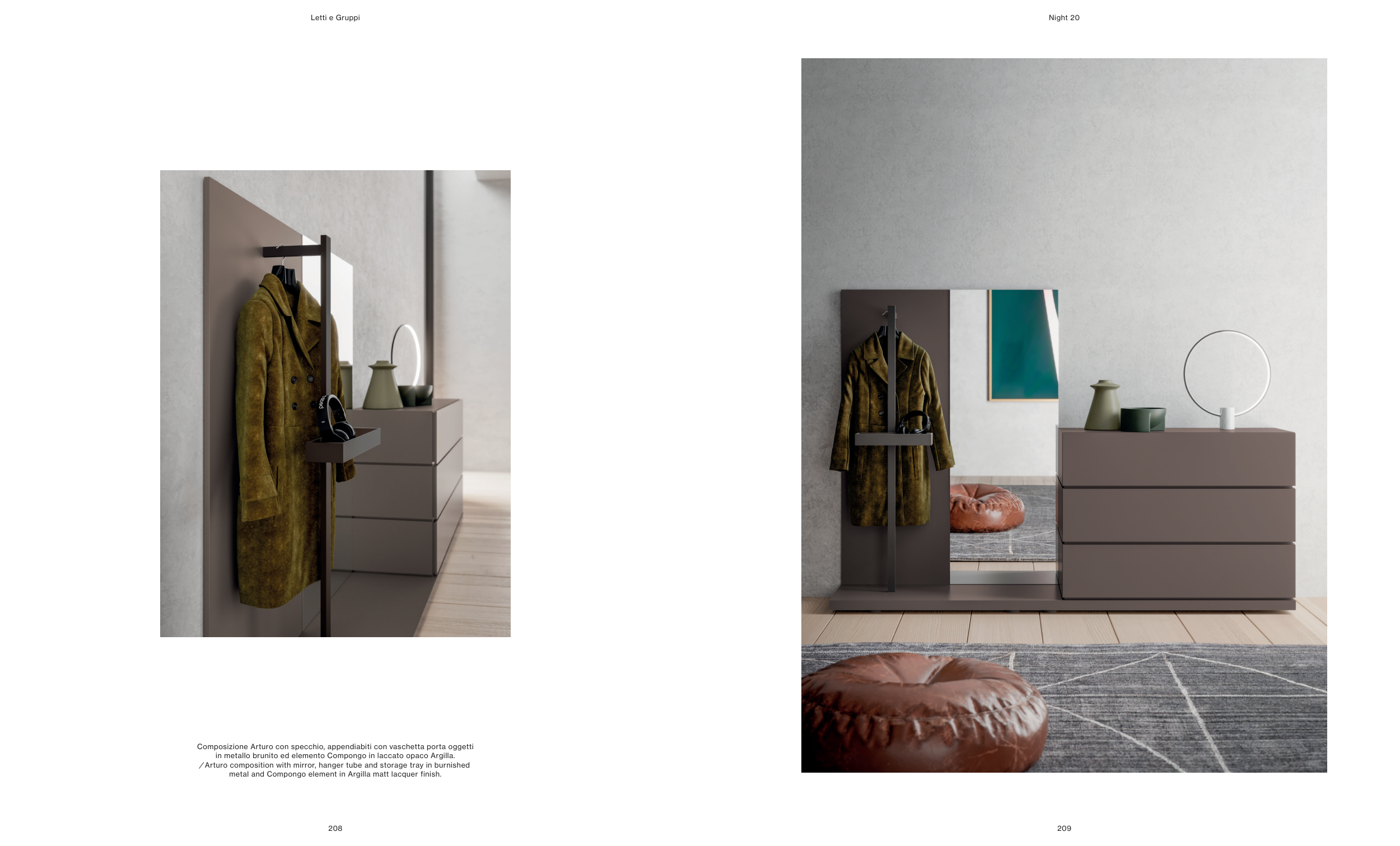 in metallo brunito ed elemento Compongo in laccato opaco Argilla.
