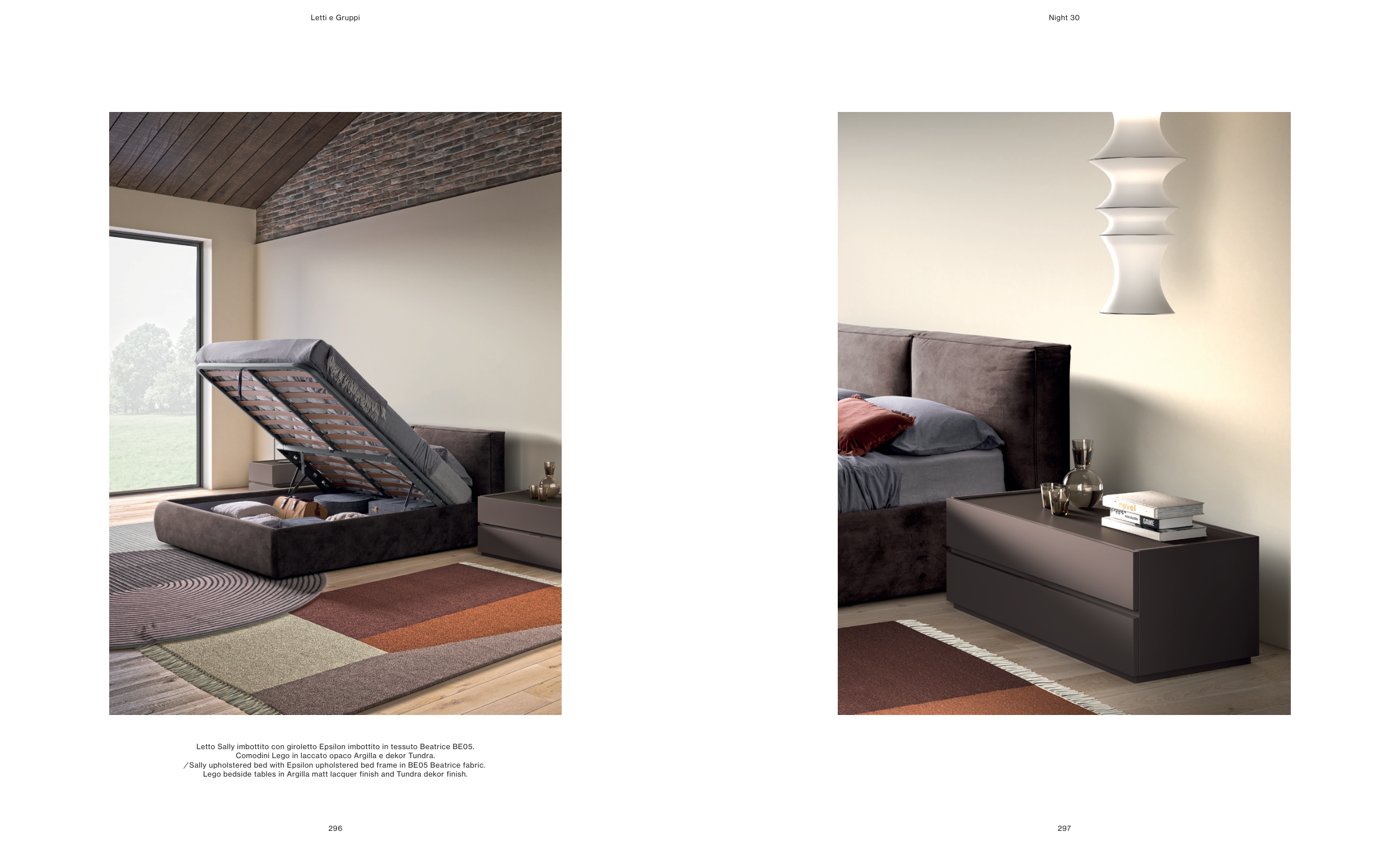 Lego bedside tables in Argilla matt lacquer finish and Tundra dekor finish.