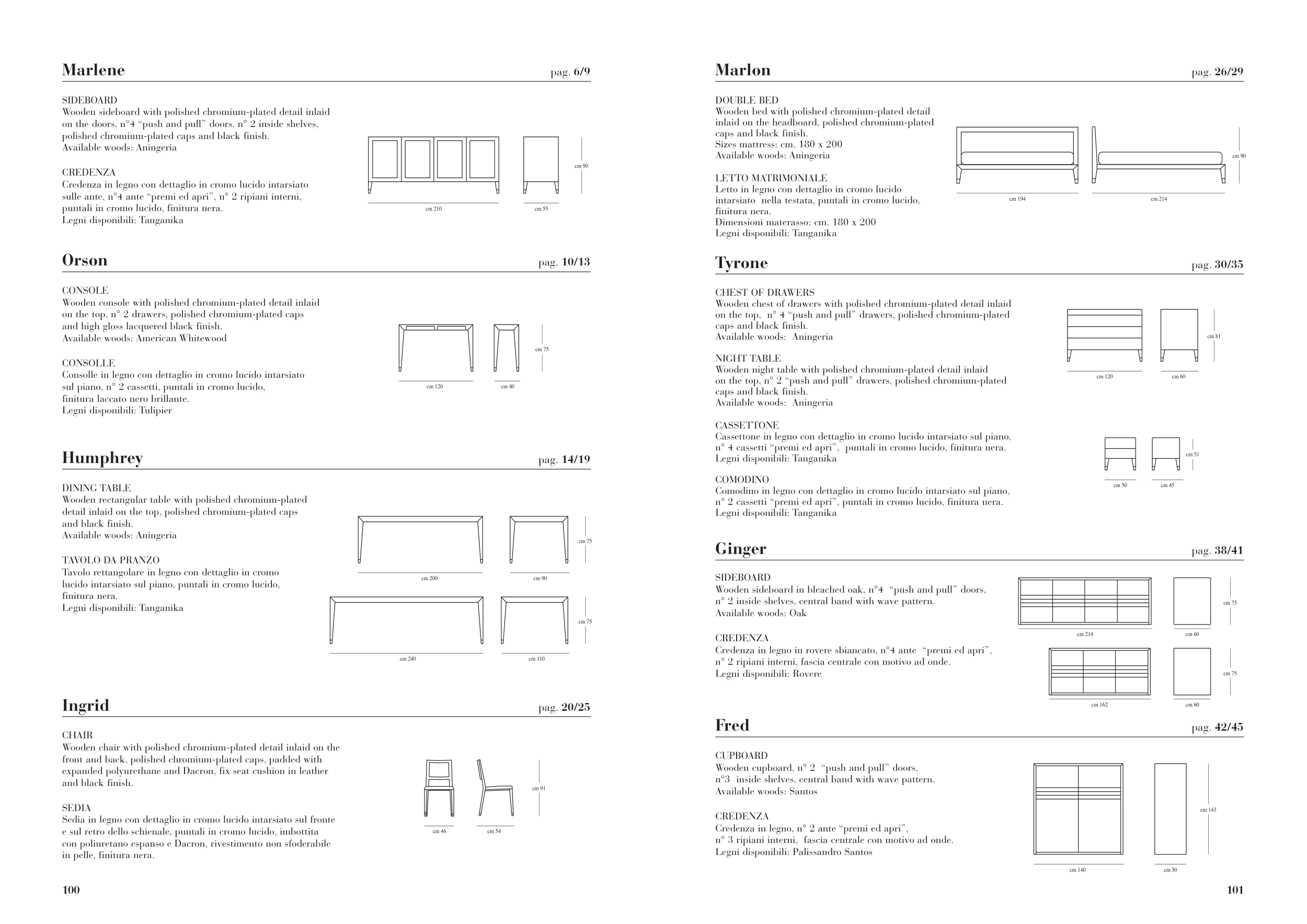 Credenza in legno con dettaglio in cromo lucido intarsiato