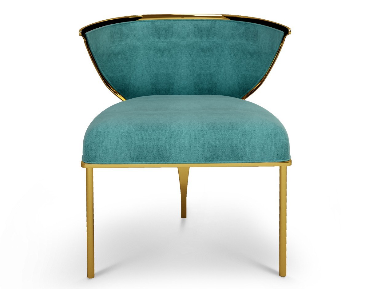Beth Taylor had achieved her iconic status for the way she looked. With her violet eyes and porcelain skin, Taylor was considered one of the most sensual women on earth. Such ethereal beauty and glory were emphasized in one of the most acclaimed movies of the Hollywood’s golden age, Cleopatra, where Taylor shows up the famous costume covered with golden feathers. Inspired by the iconic costume, Ottiu designed the new Beth mid-century modern dining chair. The exquisite modern dining chair features a structure in polished brass supporting the smooth velvet upholstery on the top and back of the chair. The arms of the mid-century modern dining chair recall the glorious golden feathers upon Elizabeth Taylor’s arms. The Beth dining chair is a memorable mid-century modern design piece created to perfectly fit in any contemporary home décor. Beth Dining Chair is part of Century Collection.