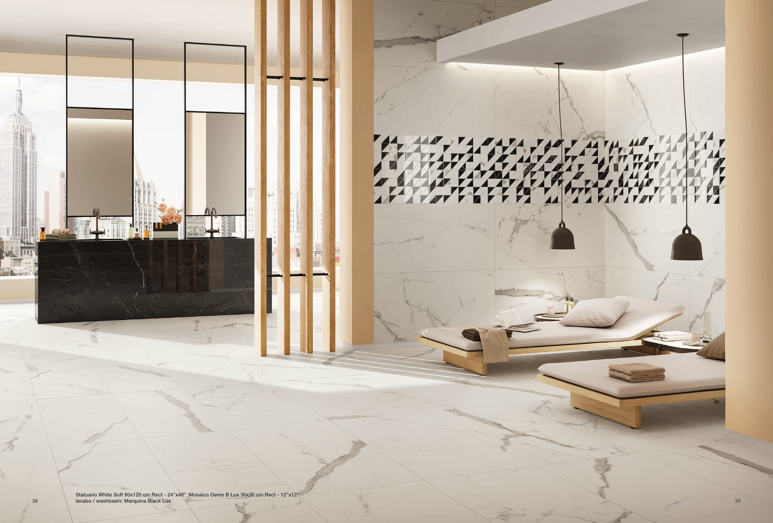 Statuario White Soft 60x120 cm Rect - 24”x48”_Mosaico Gems B Lux 30x30 cm Rect - 12”x12”