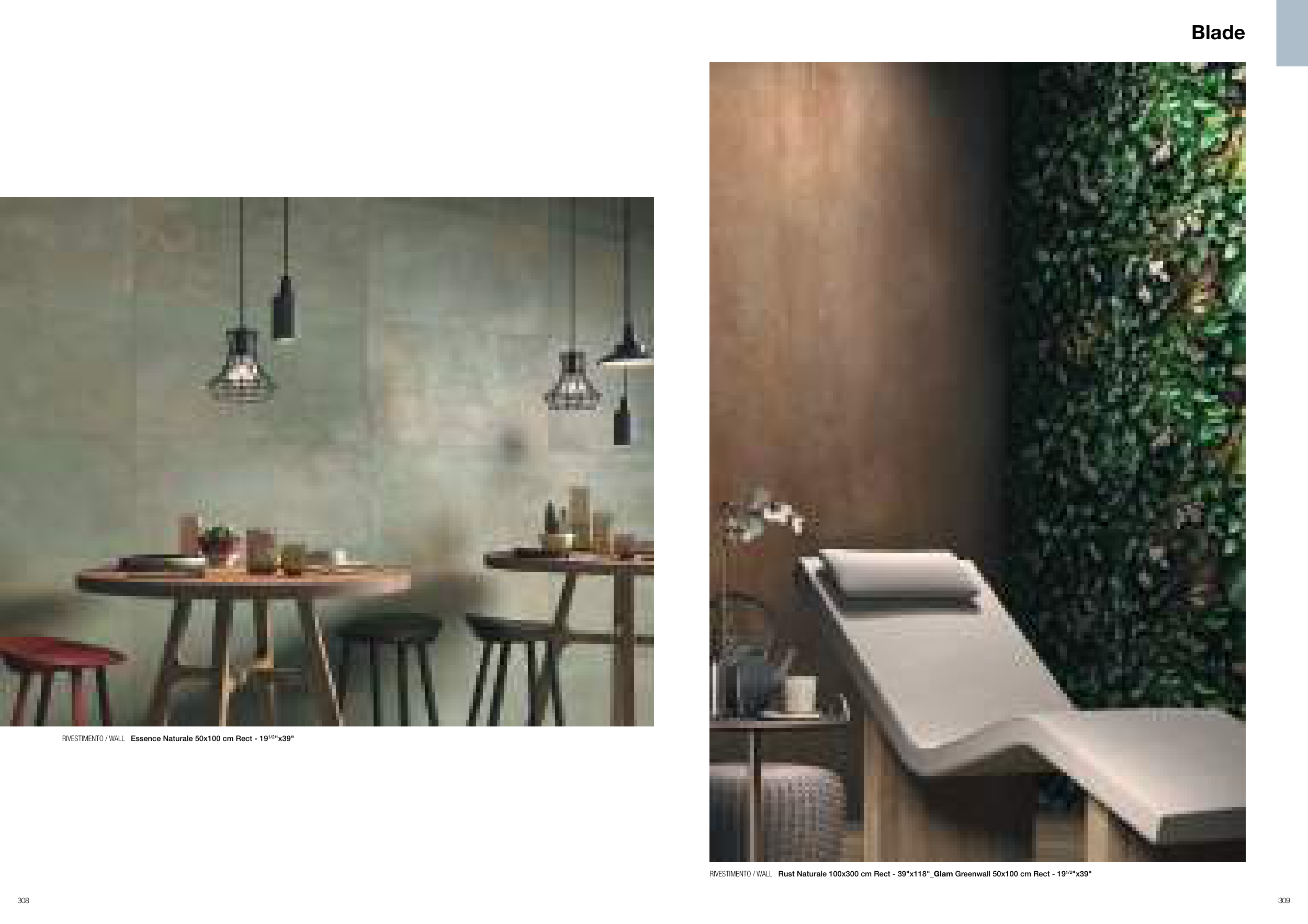 RIVESTIMENTO / WALL Rust Naturale 100x300 cm Rect - 39"x118"_Glam Greenwall 50x100 cm Rect - 191/2"x39"