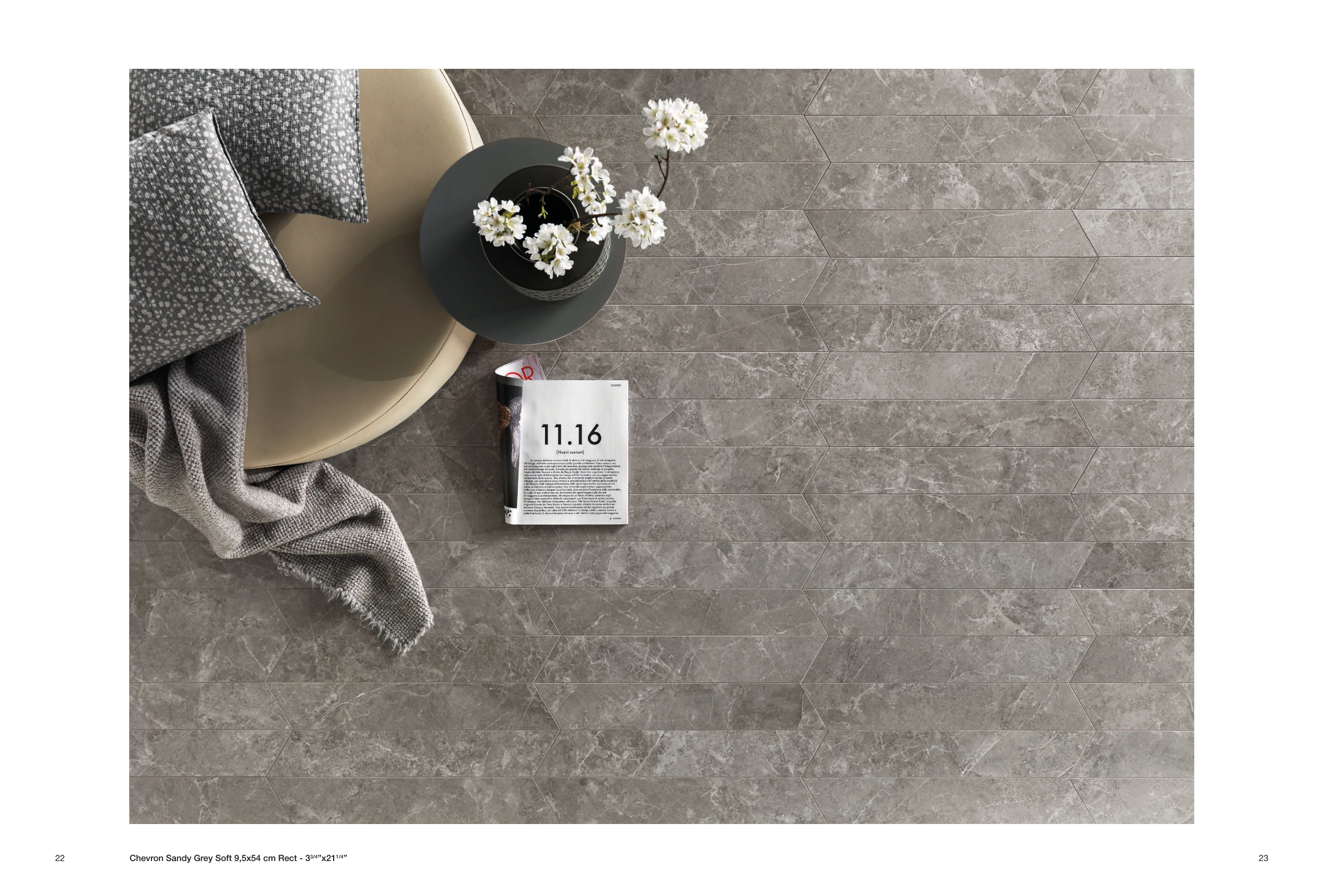 Chevron Sandy Grey Soft 9,5x54 cm Rect - 33/4”x211/4”