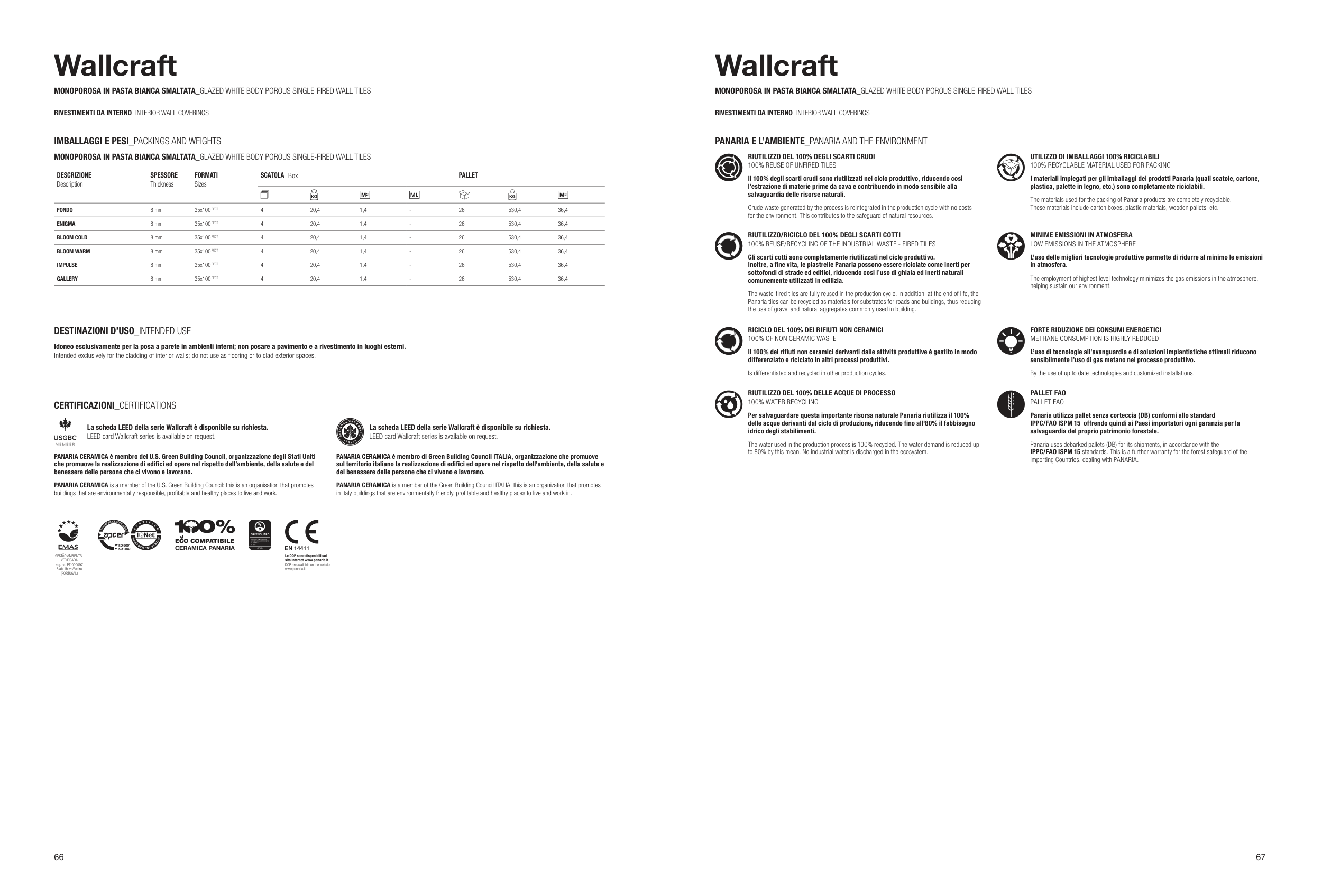 La scheda LEED della serie Wallcraft è disponibile su richiesta.