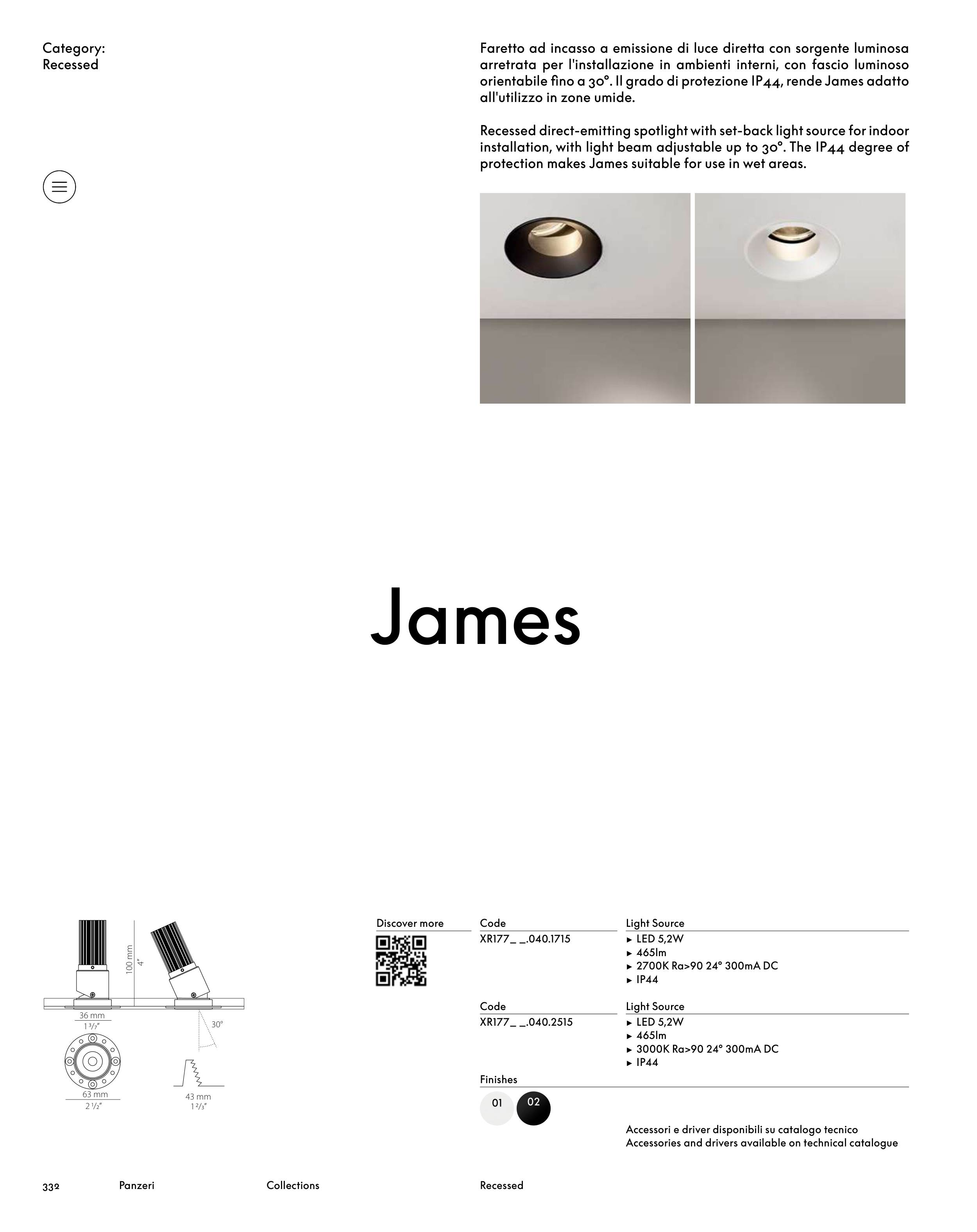 orientabile fino a 30°. Il grado di protezione IP44, rende James adatto