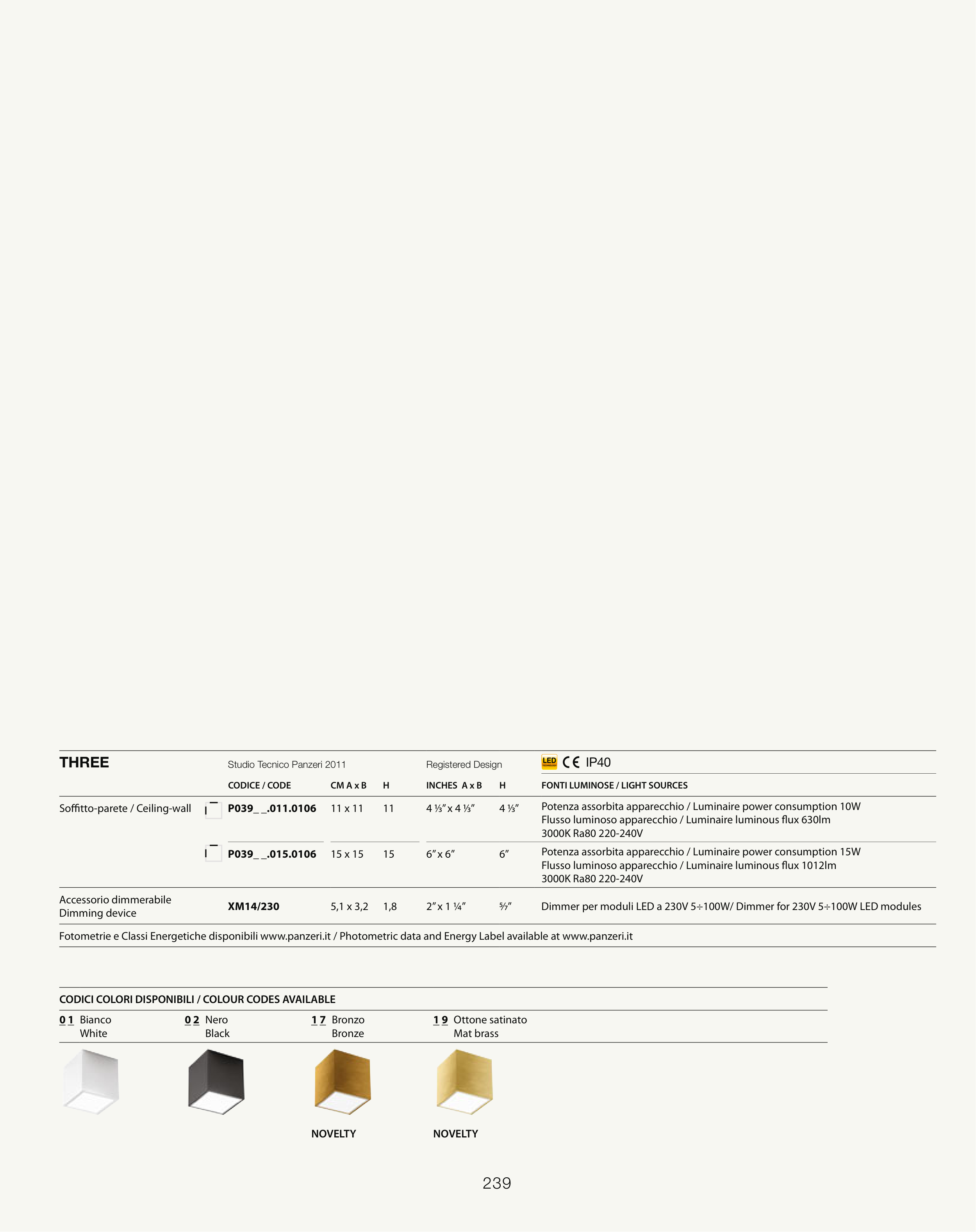 Fotometrie e Classi Energetiche disponibili www.panzeri.it / Photometric data and Energy Label available at www.panzeri.it