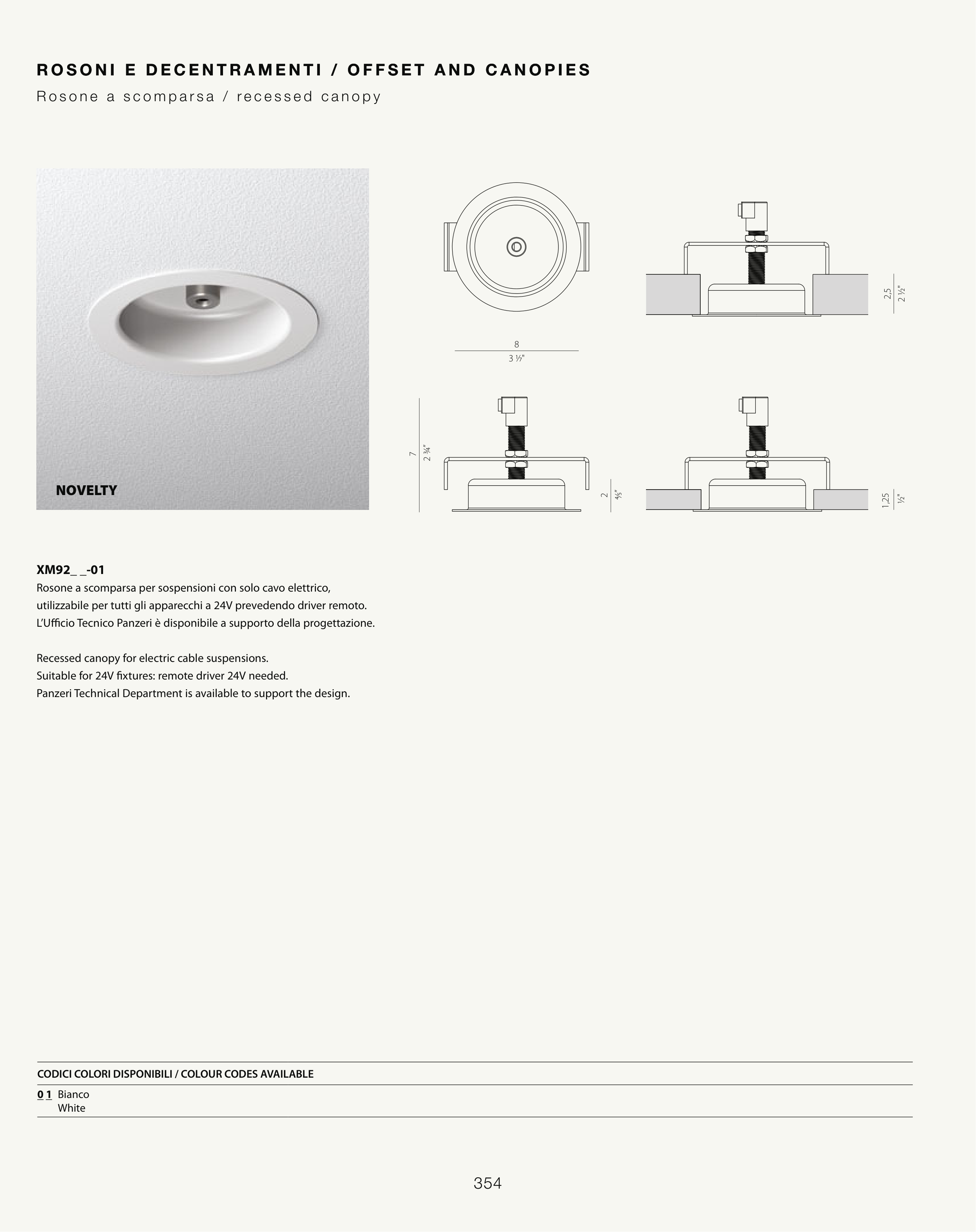 Recessed canopy for electric cable suspensions.