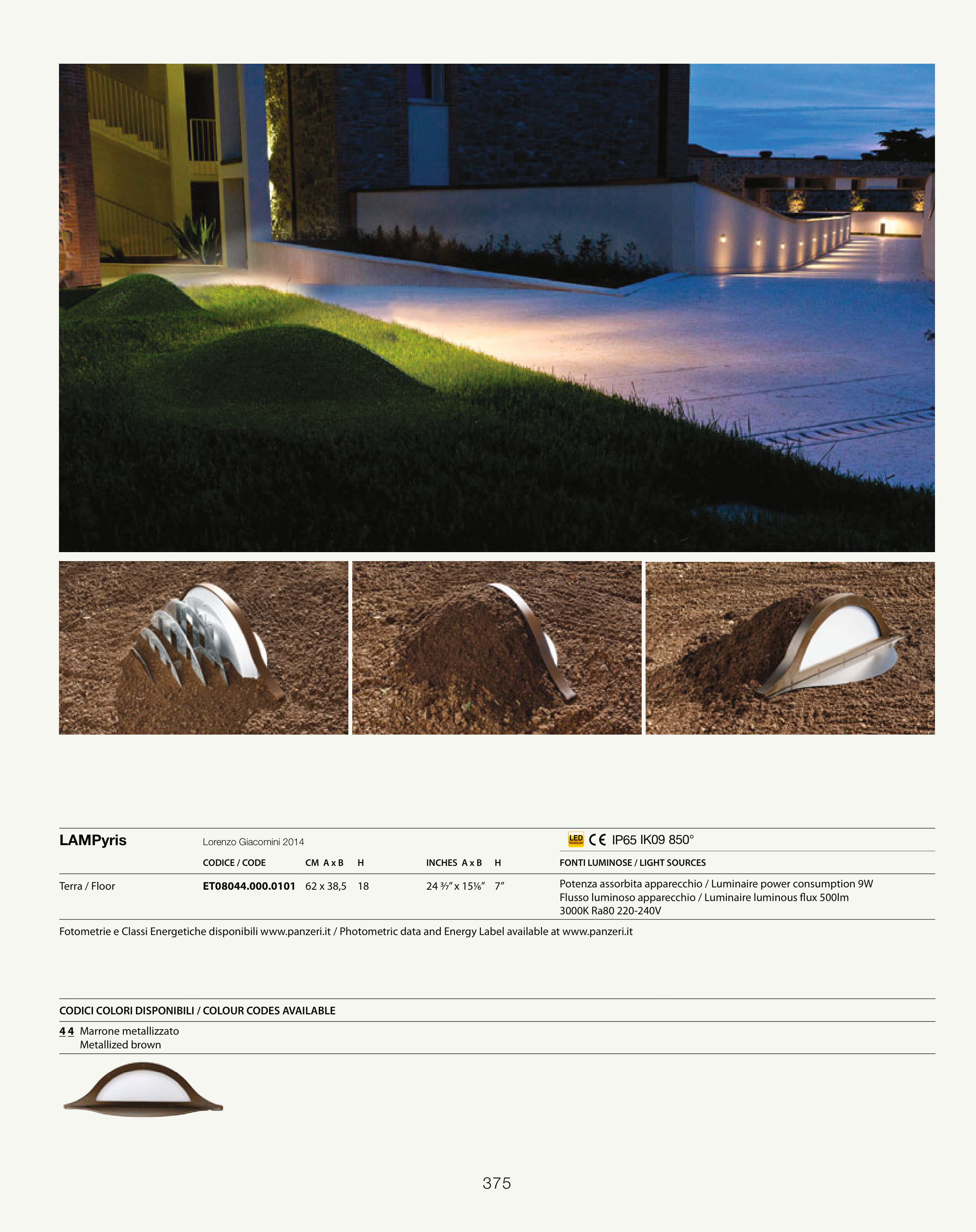 Fotometrie e Classi Energetiche disponibili www.panzeri.it / Photometric data and Energy Label available at www.panzeri.it