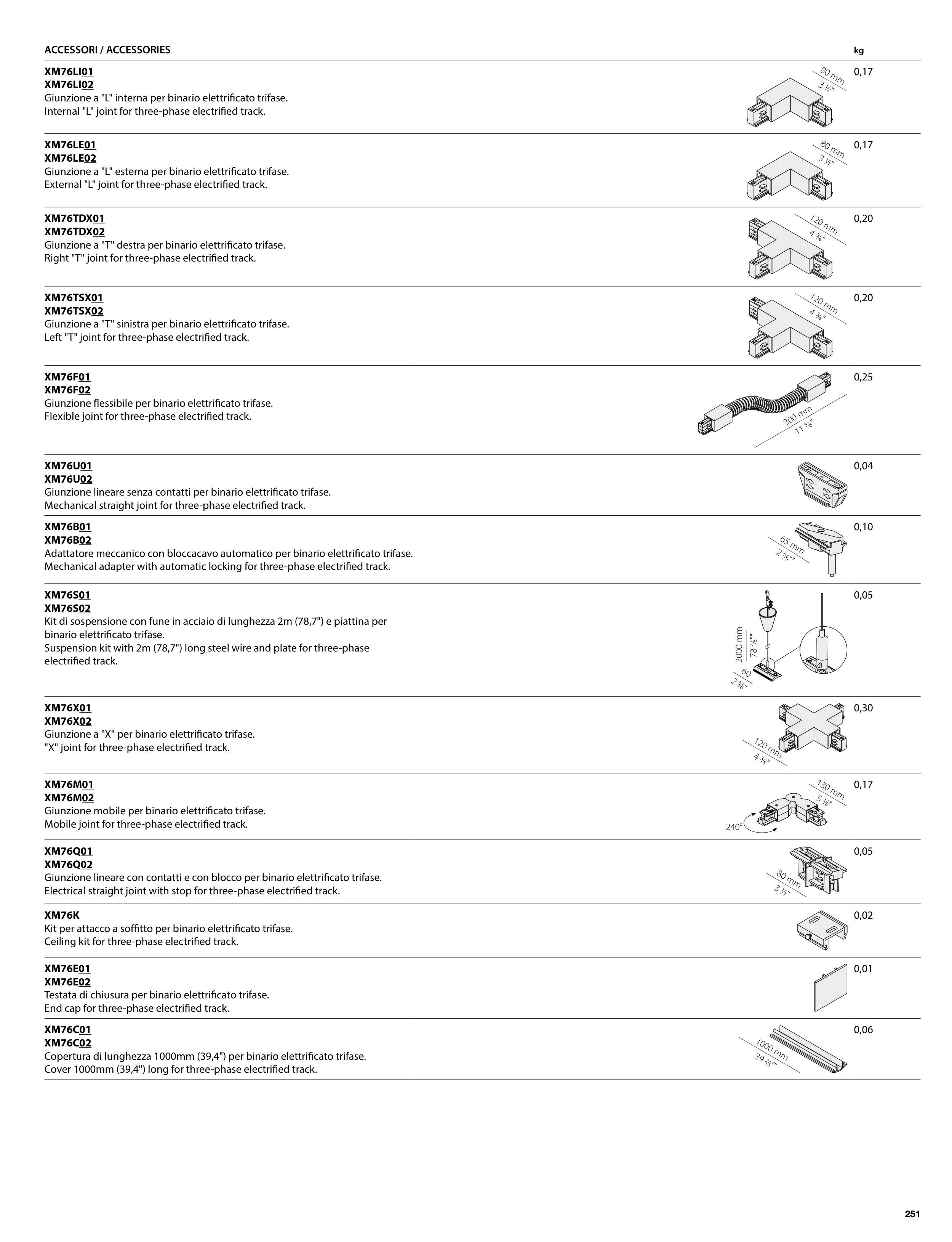 Copertura di lunghezza 1000mm (39,4") per binario elettrificato trifase.