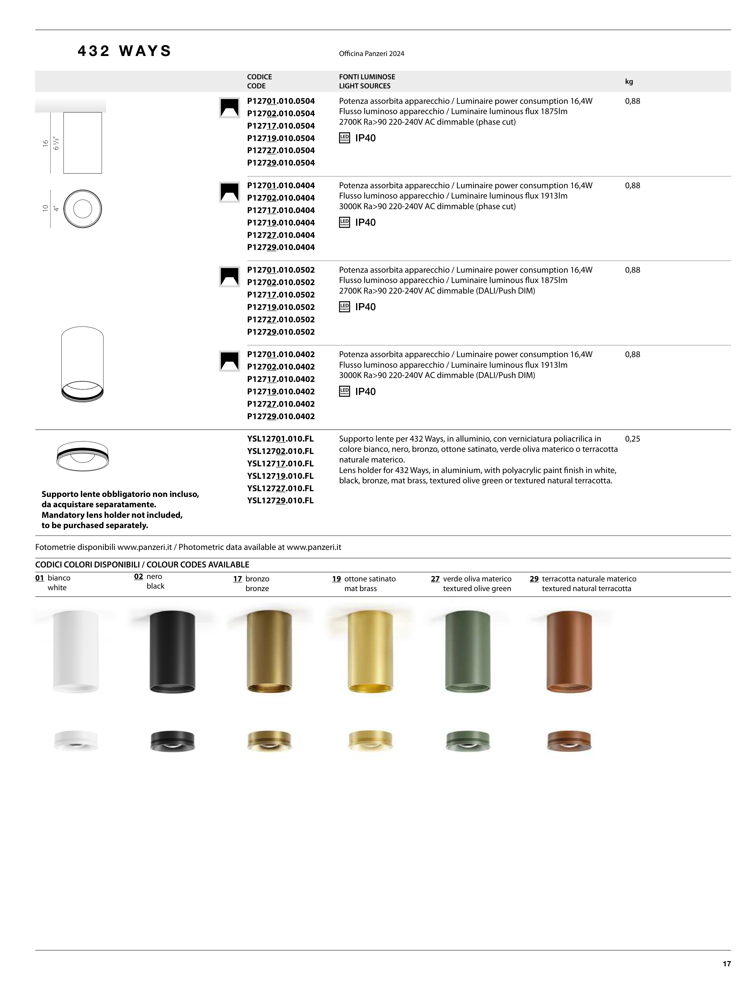 Fotometrie disponibili www.panzeri.it / Photometric data available at www.panzeri.it