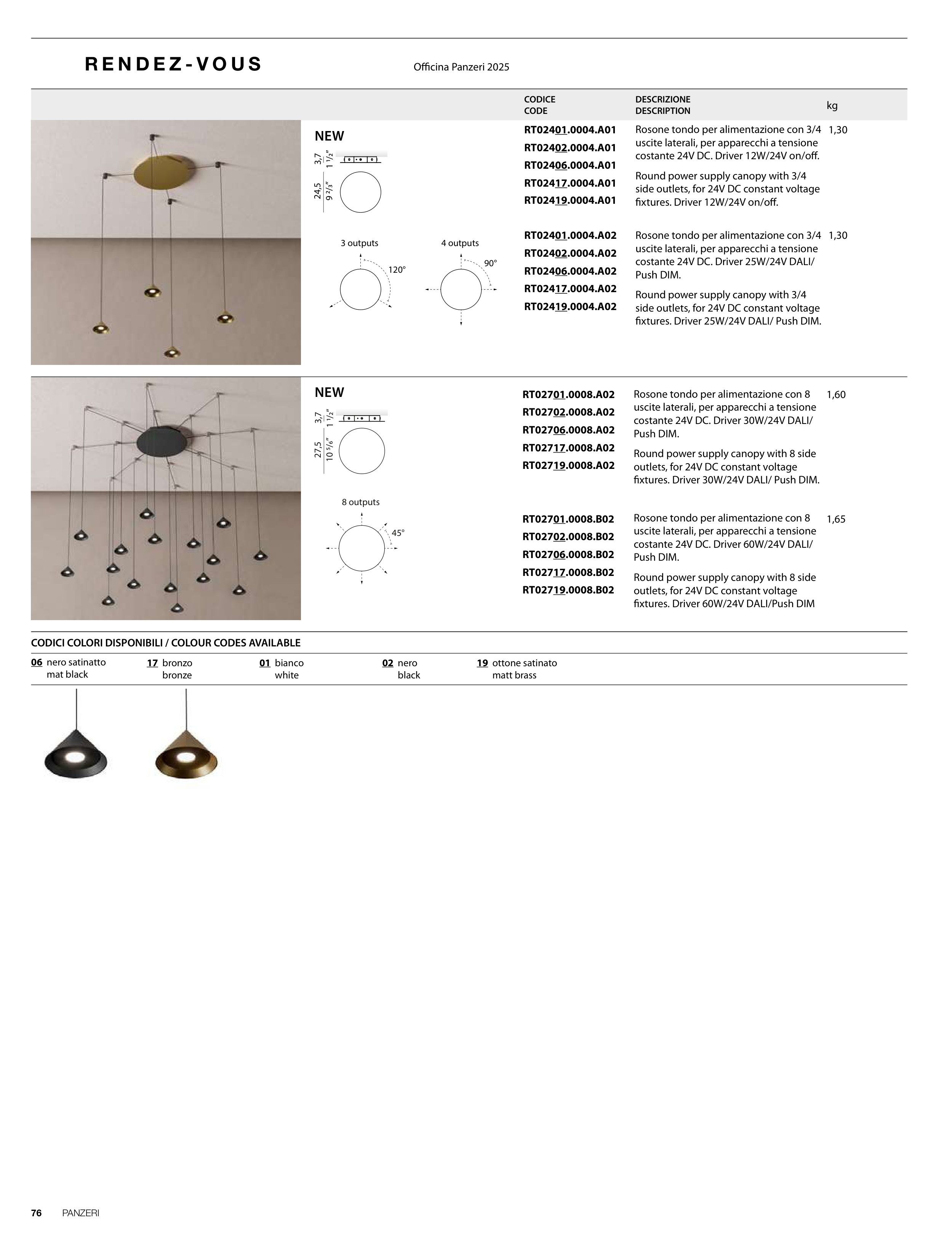 CODICI COLORI DISPONIBILI / COLOUR CODES AVAILABLE