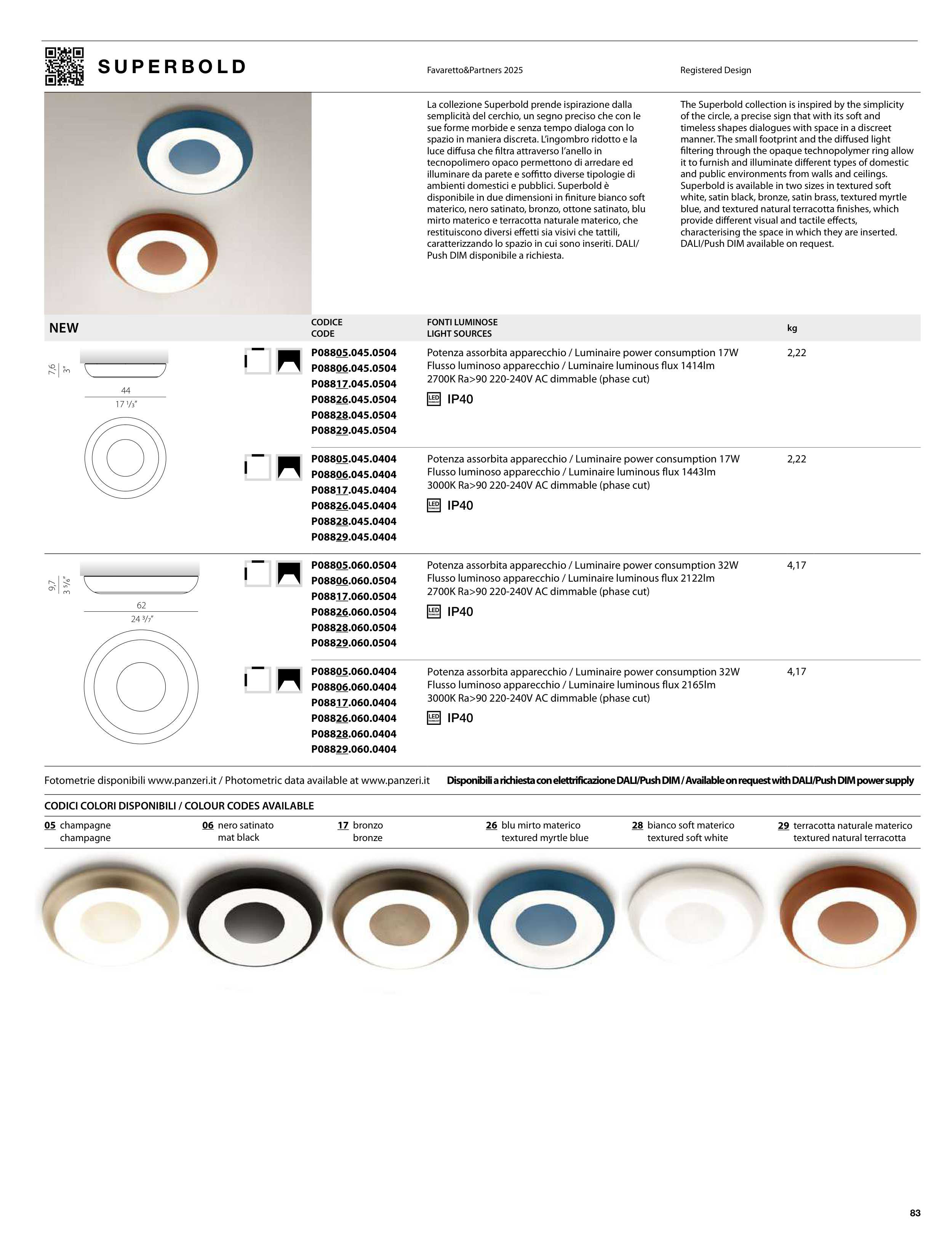 Fotometrie disponibili www.panzeri.it / Photometric data available at www.panzeri.it Disponibili a richiesta con elettrificazione DALI/Push DIM / Available on request with DALI/Push DIM power supply