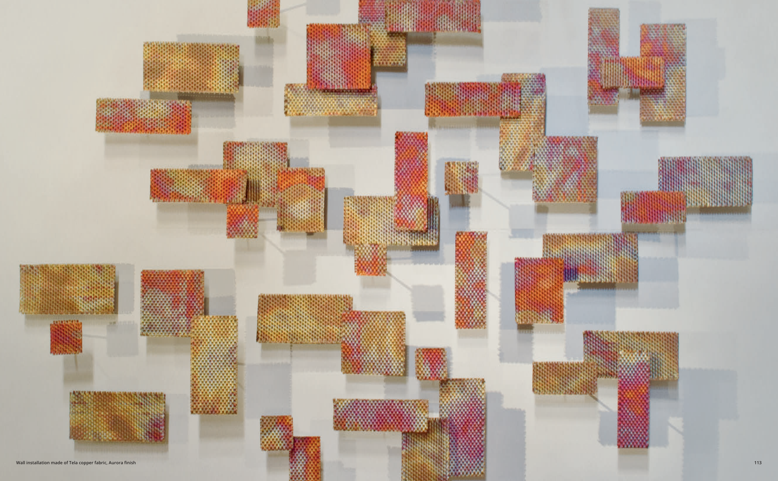 Wall installation made of Tela copper fabric, Aurora finish