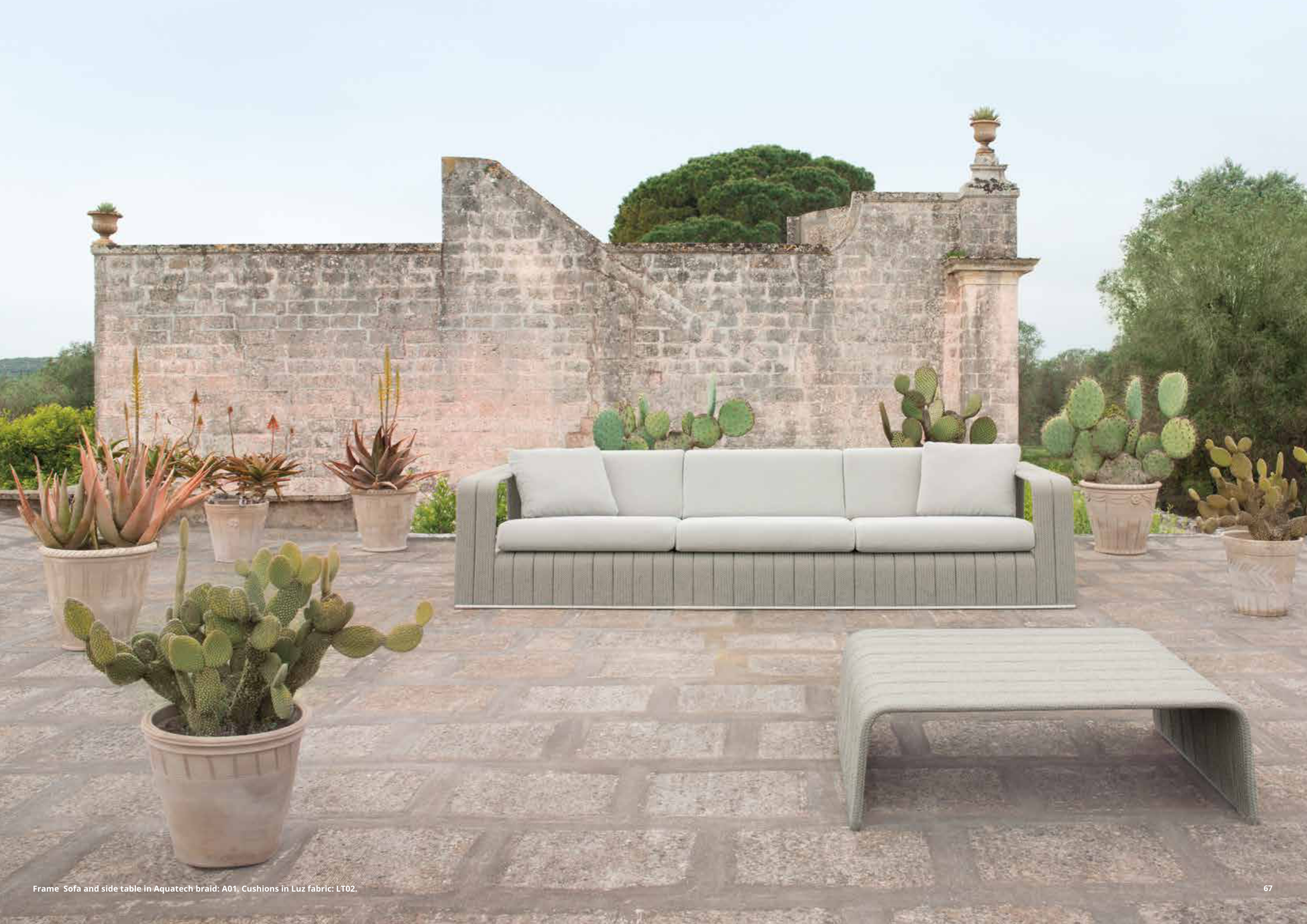Frame Sofa and side table in Aquatech braid: A01. Cushions in Luz fabric: LT02.