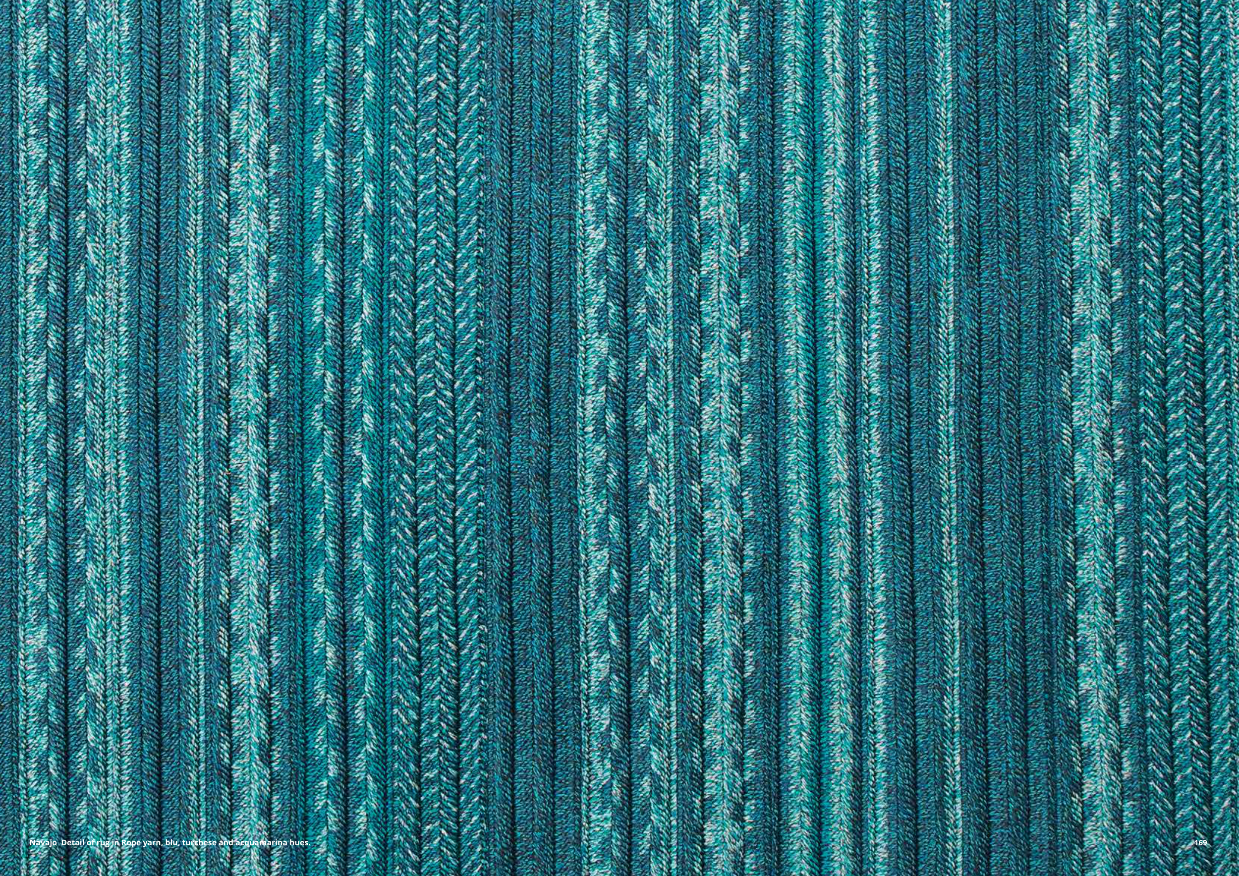 Navajo Detail of rug in Rope yarn, blu, turchese and acquamarina hues.