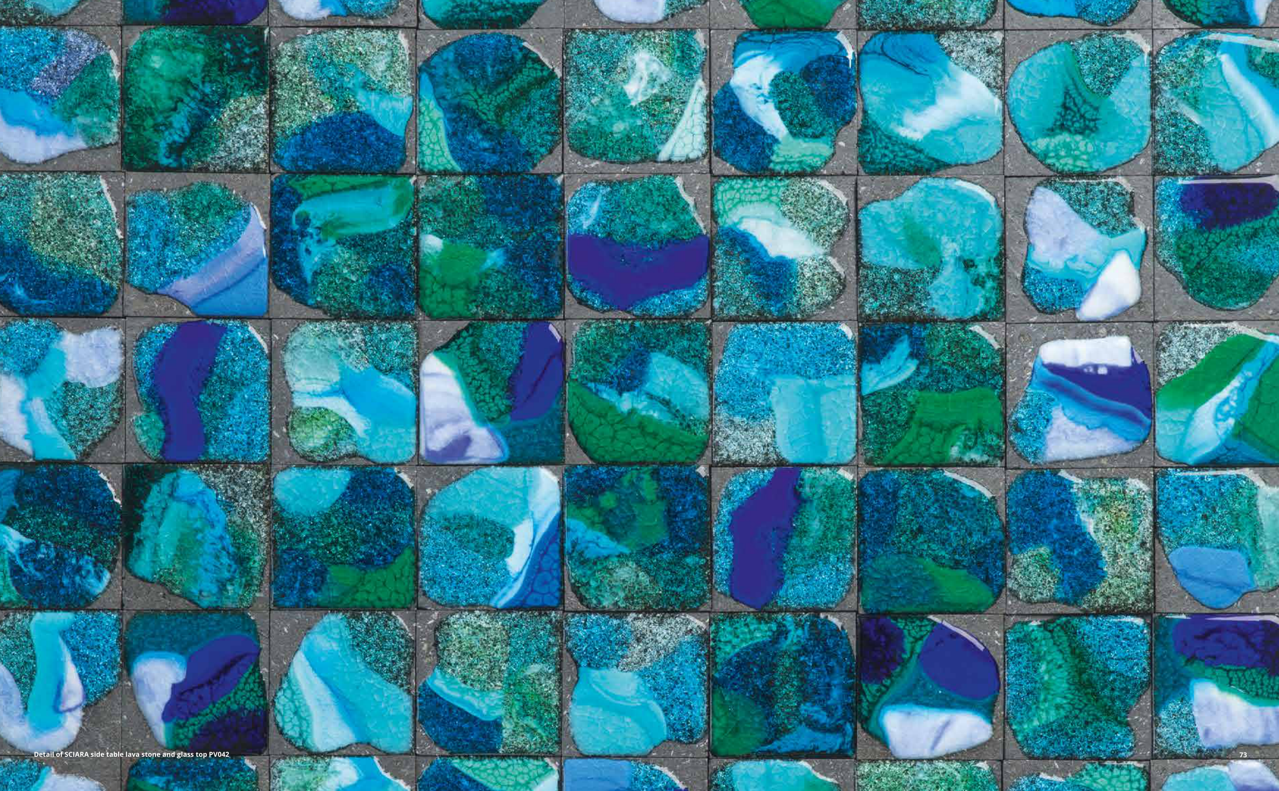 Detail of SCIARA side table lava stone and glass top PV042