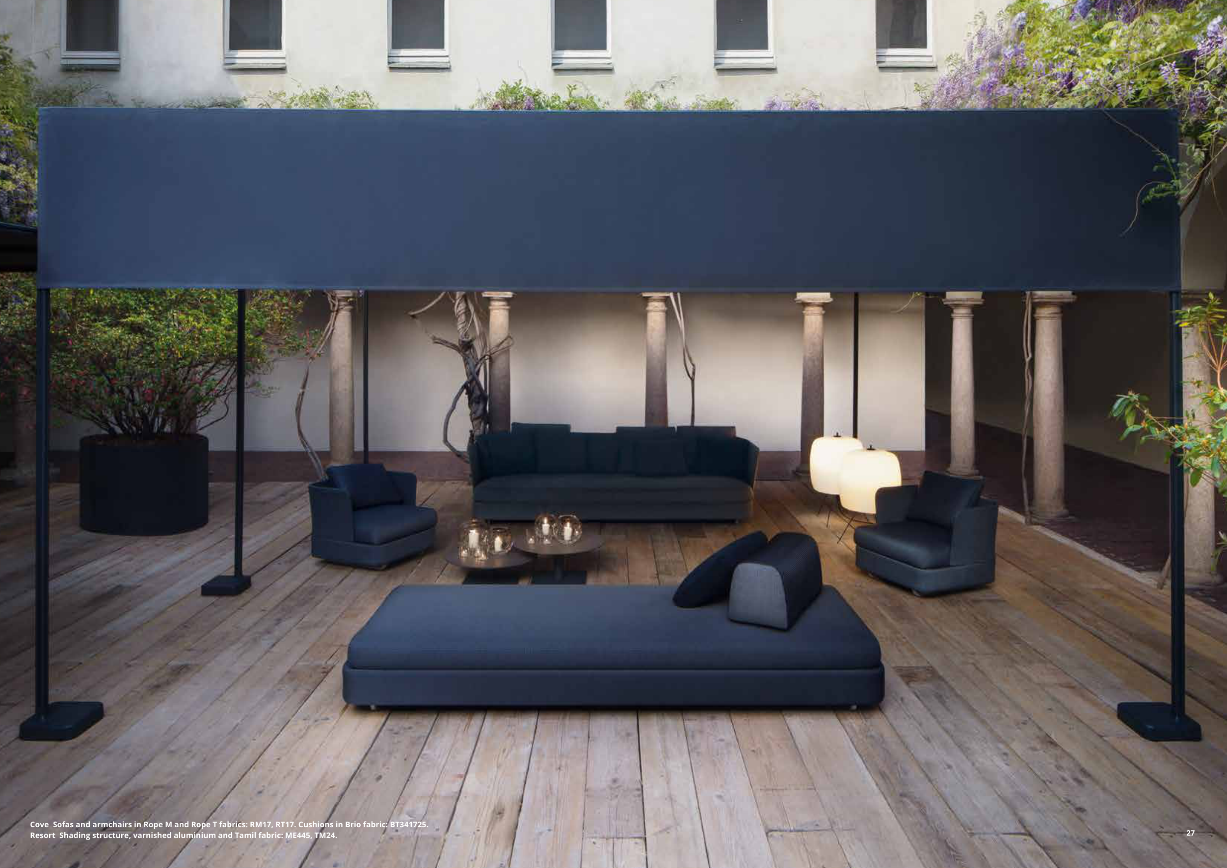Cove Sofas and armchairs in Rope M and Rope T fabrics: RM17, RT17. Cushions in Brio fabric: BT341725.