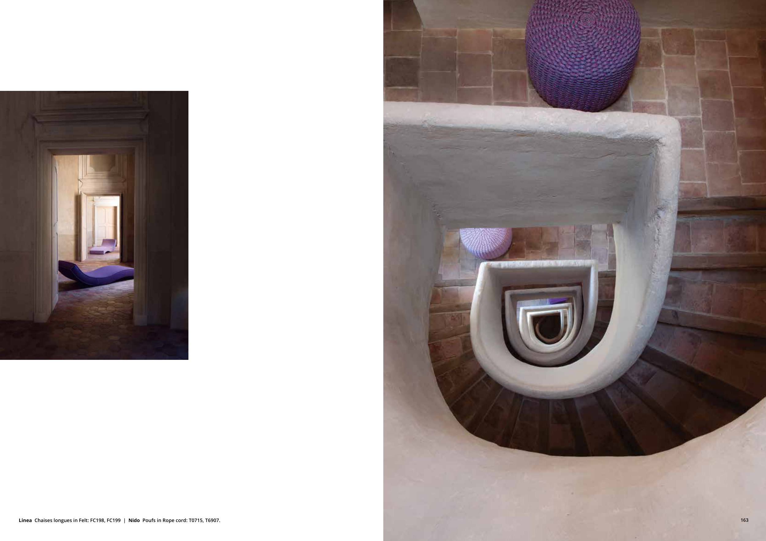 Linea Chaises longues in Felt: FC198, FC199 | Nido Poufs in Rope cord: T0715, T6907.