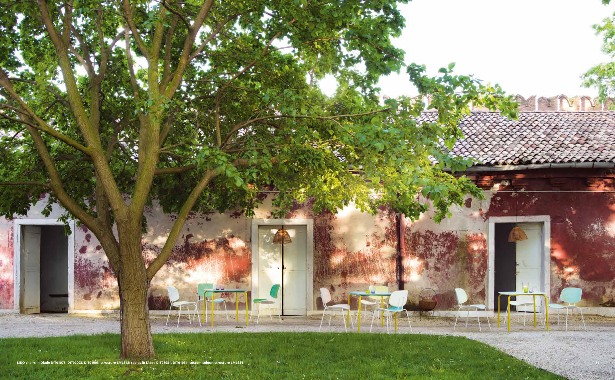 LIDO chairs in Diade DIT01075, DIT02003, DIT01003, structure LML342; tables in Diade DIT03031, DIT01031, custom colour, structure LML334