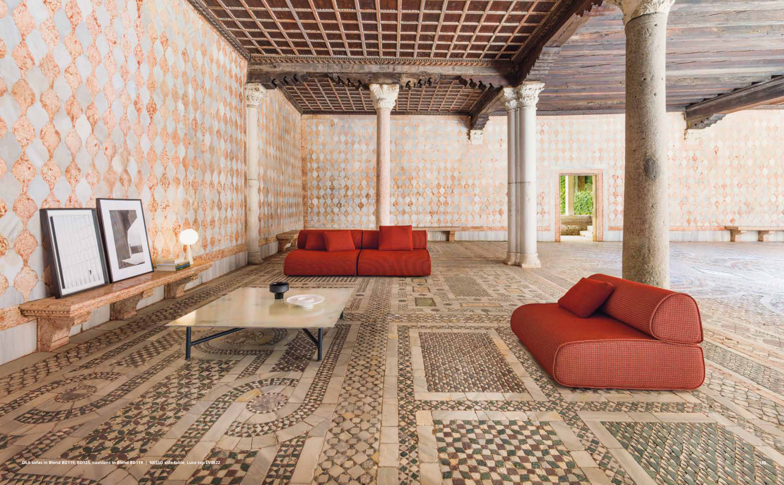 OLA sofas in Blend BD119, BD125, cushions in Blend BD119 | NESSO side table, Luce top LVS522