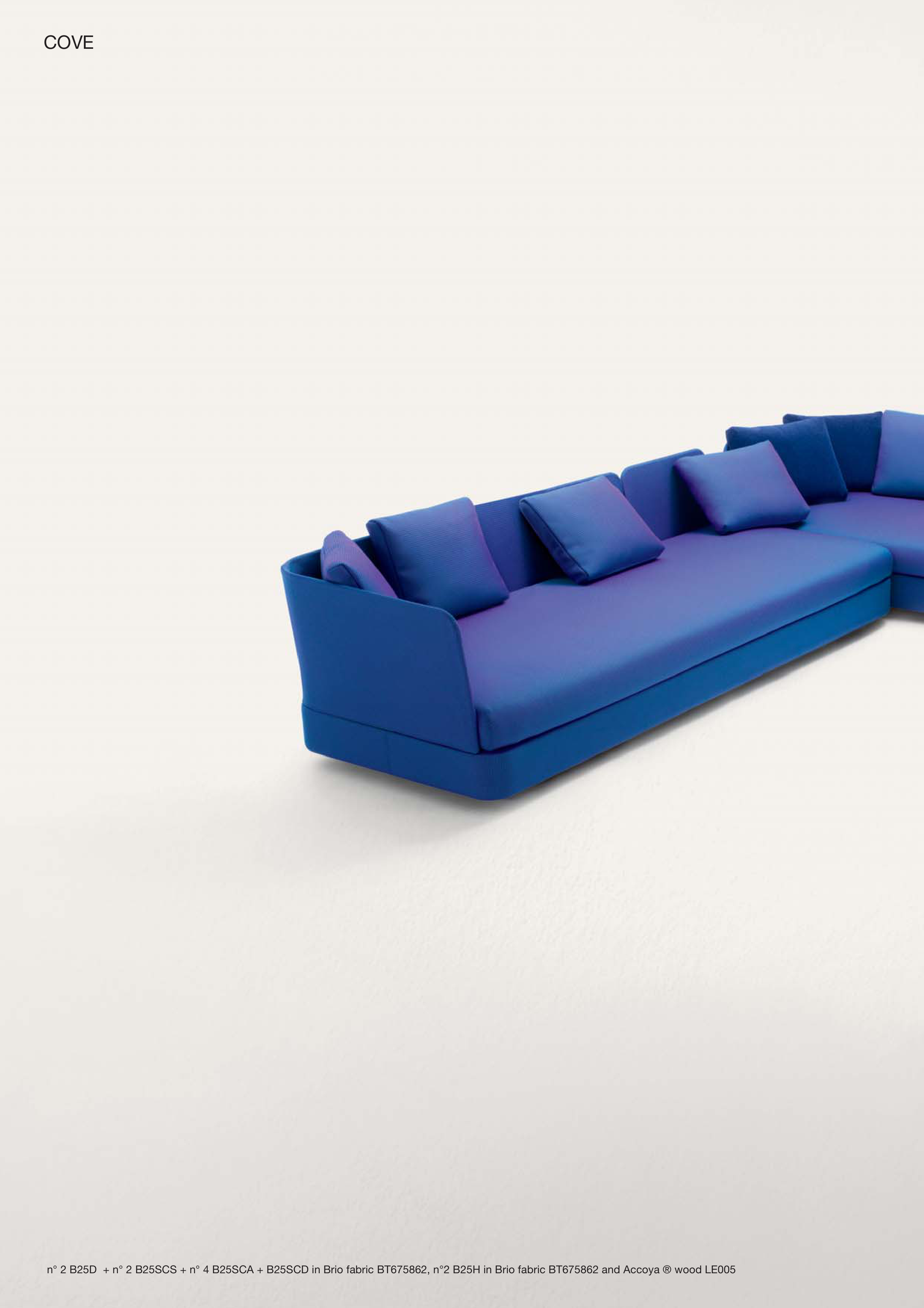 n° 2 B25D + n° 2 B25SCS + n° 4 B25SCA + B25SCD in Brio fabric BT675862, n°2 B25H in Brio fabric BT675862 and Accoya ® wood LE005