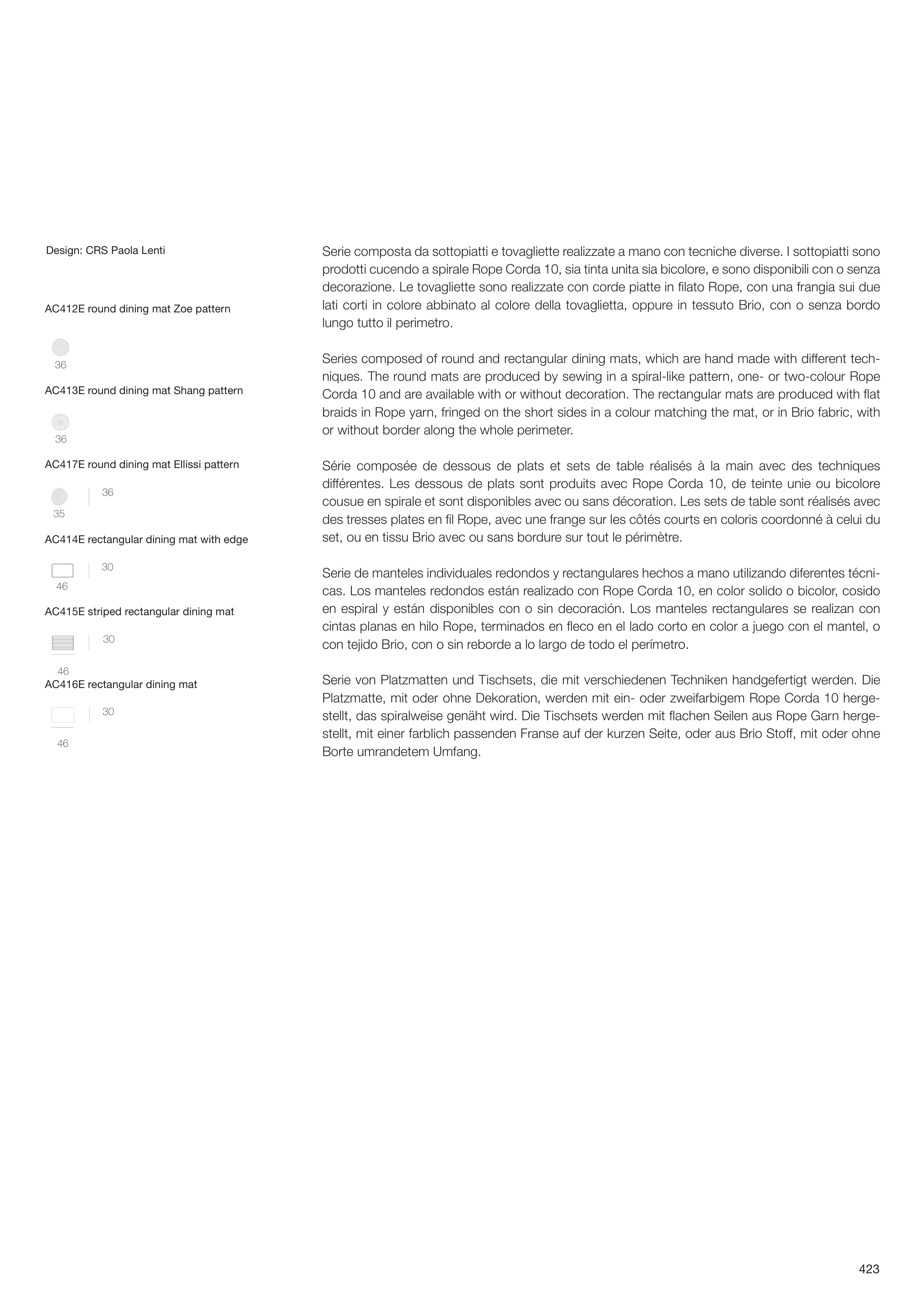 Corda 10 and are available with or without decoration. The rectangular mats are produced with fl at