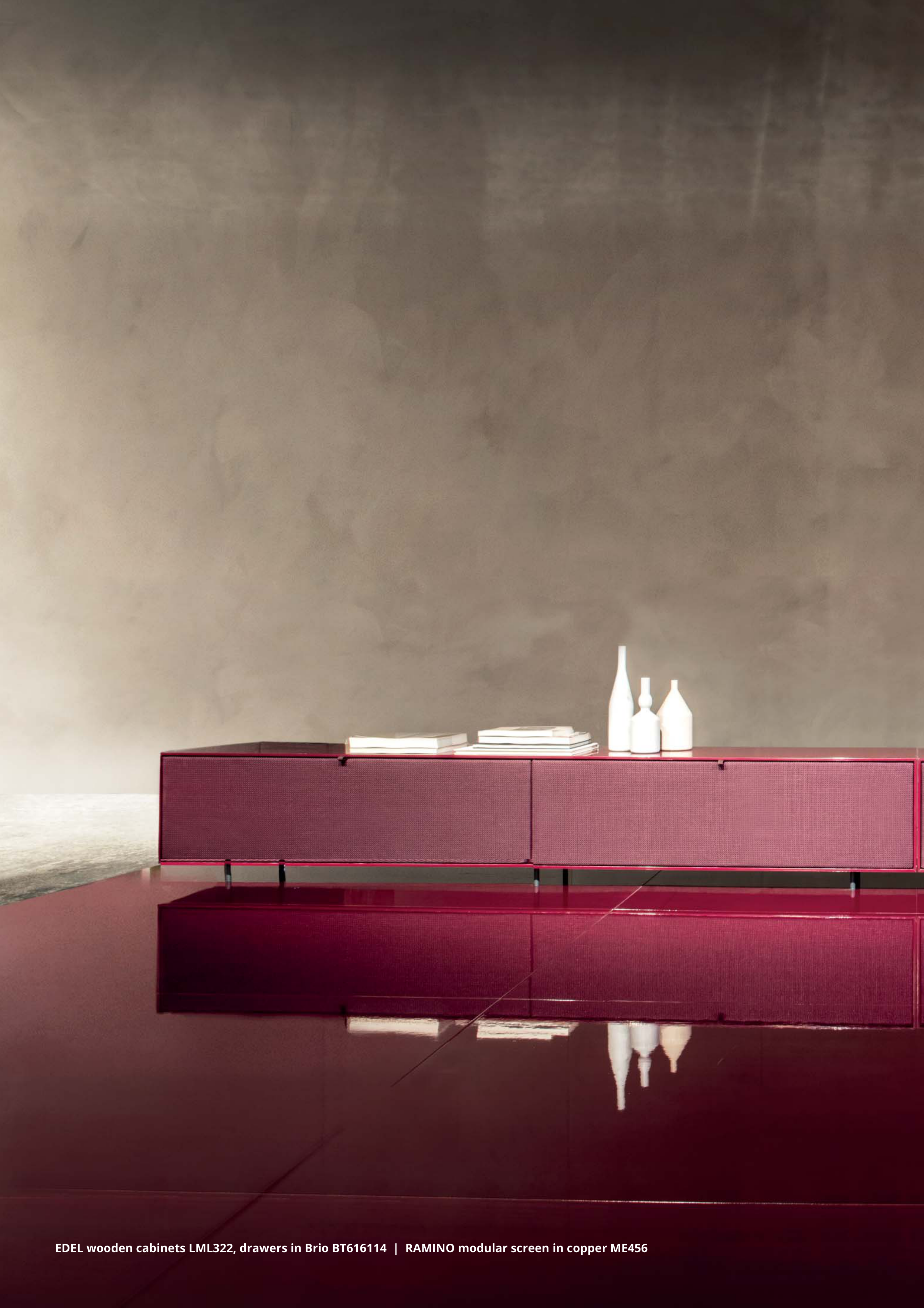 EDEL wooden cabinets LML322, drawers in Brio BT616114 | RAMINO modular screen in copper ME456