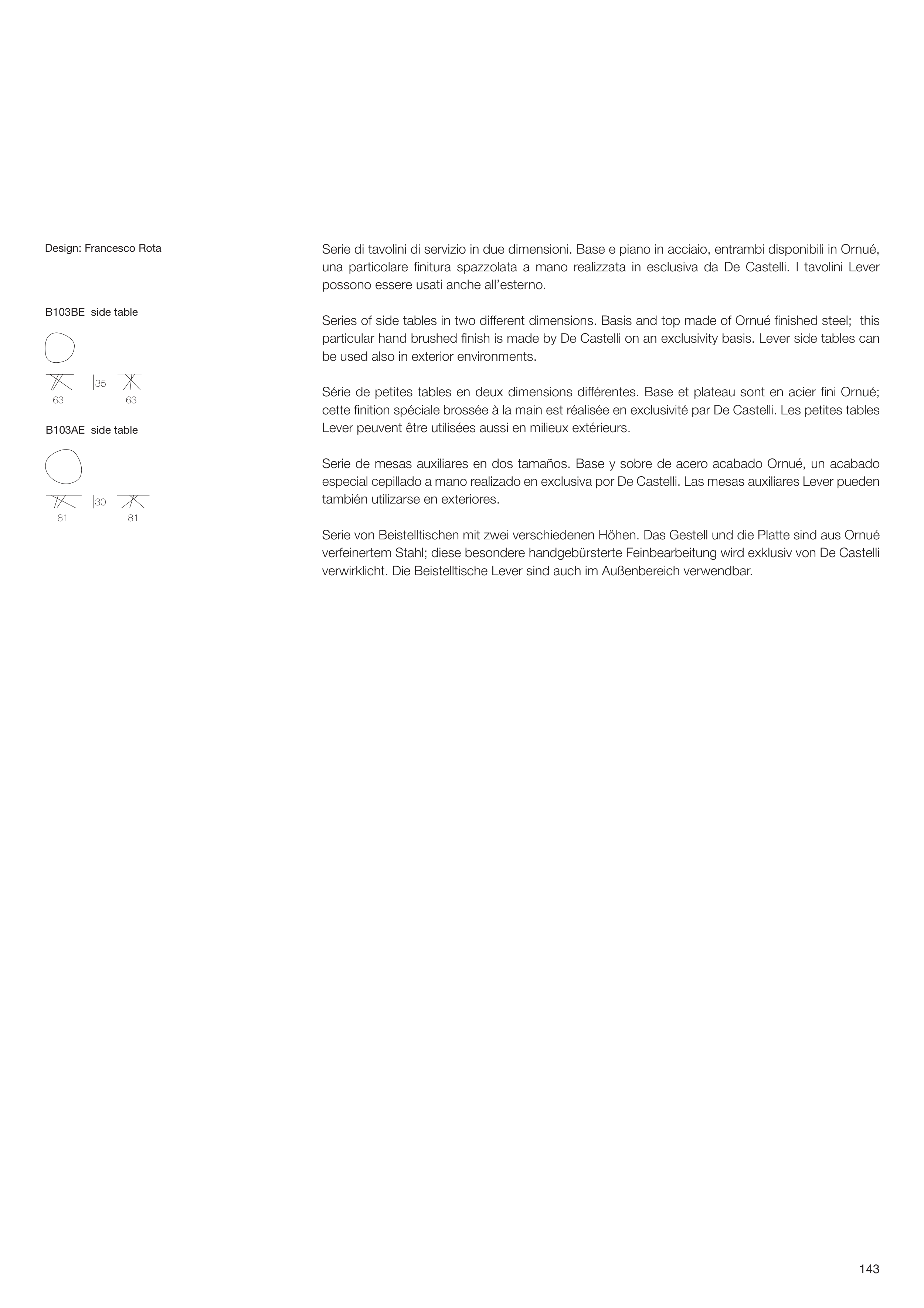 particular hand brushed fi nish is made by De Castelli on an exclusivity basis. Lever side tables can
