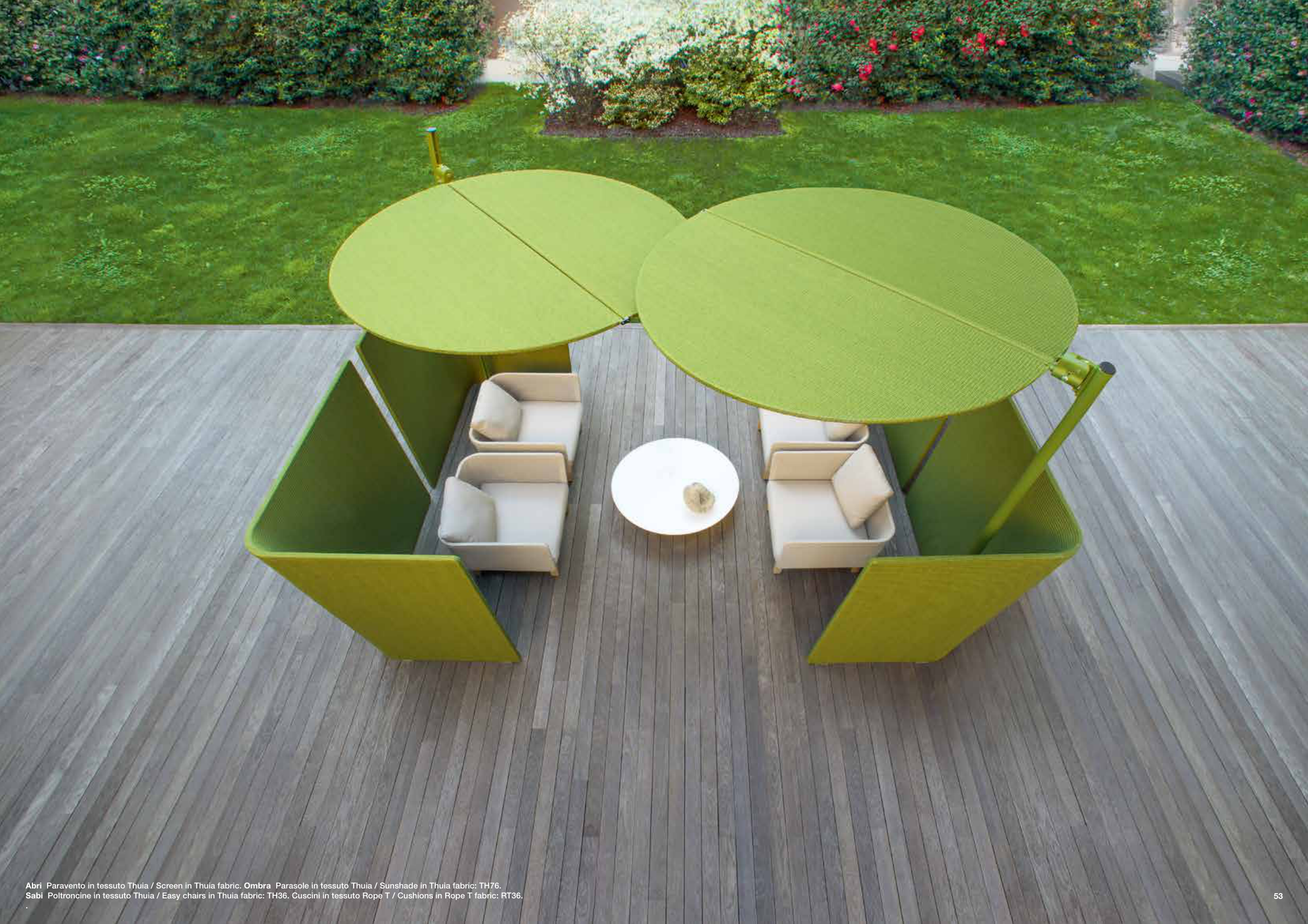 Abri Paravento in tessuto Thuia / Screen in Thuia fabric. Ombra Parasole in tessuto Thuia / Sunshade in Thuia fabric: TH76.