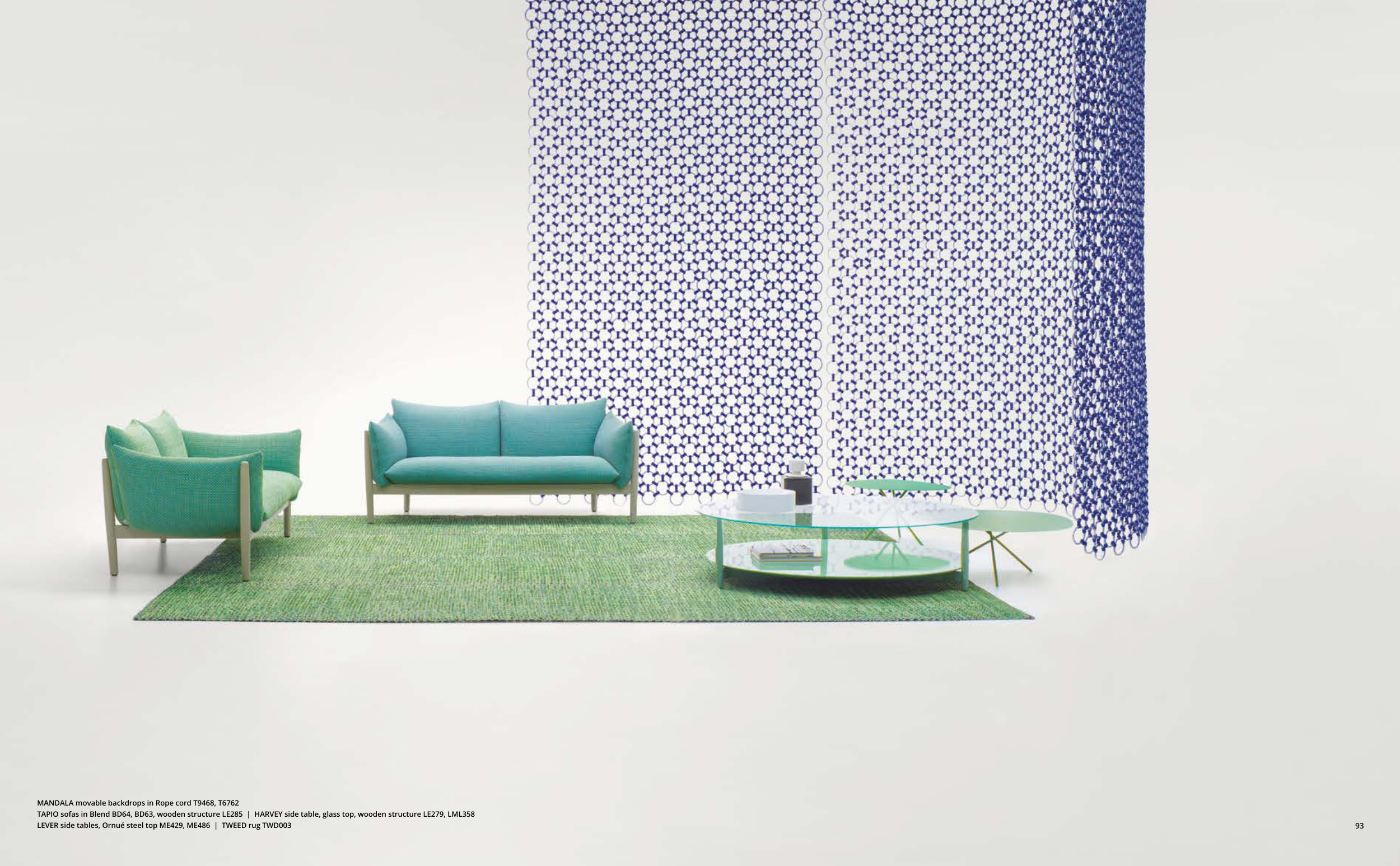 TAPIO sofas in Blend BD64, BD63, wooden structure LE285 | HARVEY side table, glass top, wooden structure LE279, LML358