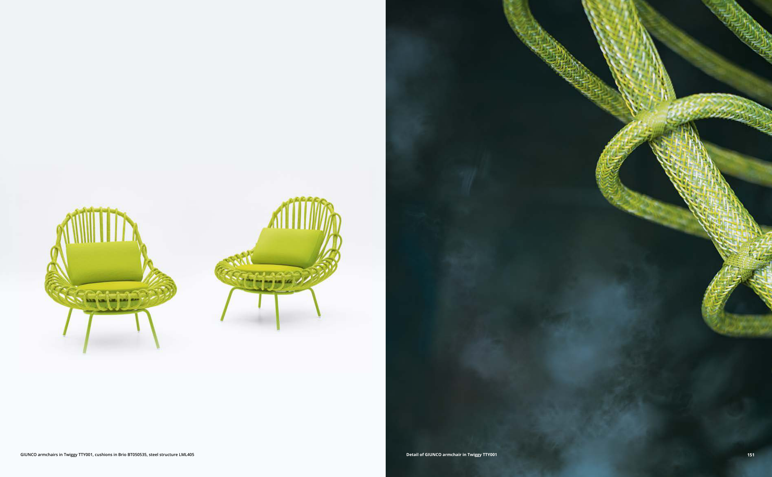 GIUNCO armchairs in Twiggy TTY001, cushions in Brio BT050535, steel structure LML405