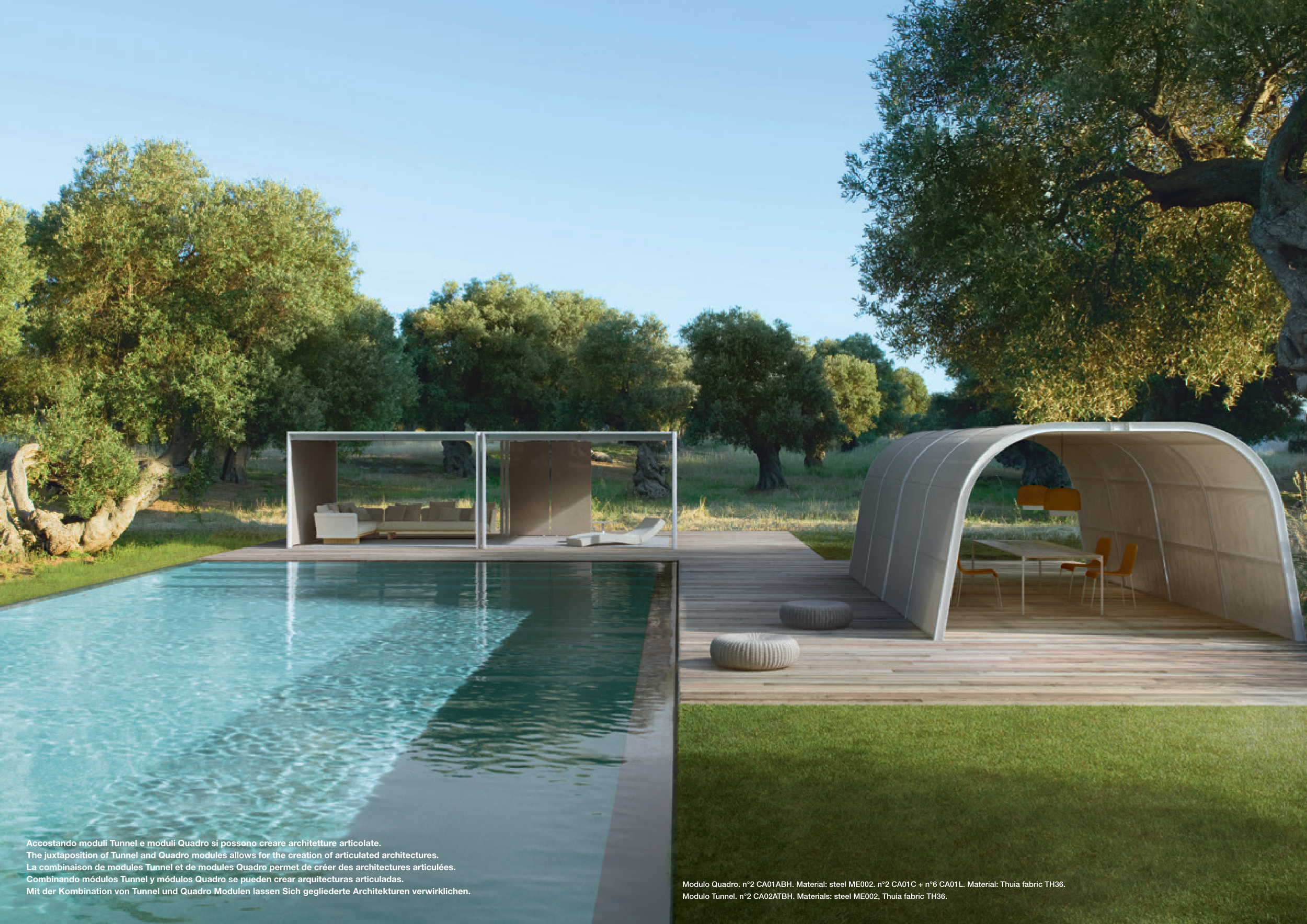 The juxtaposition of Tunnel and Quadro modules allows for the creation of articulated architectures.