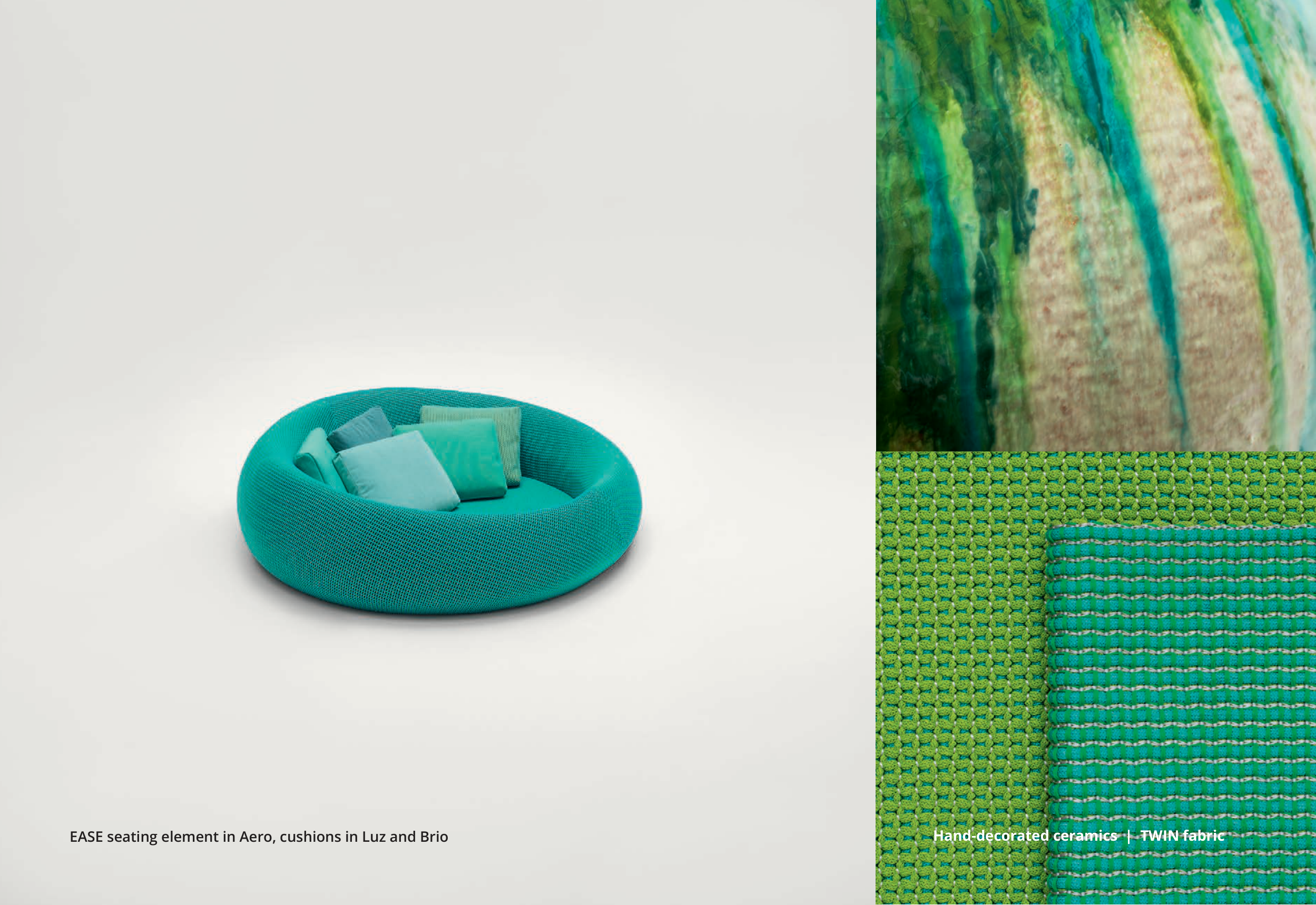 24EASE seating element in Aero, cushions in Luz and Brio