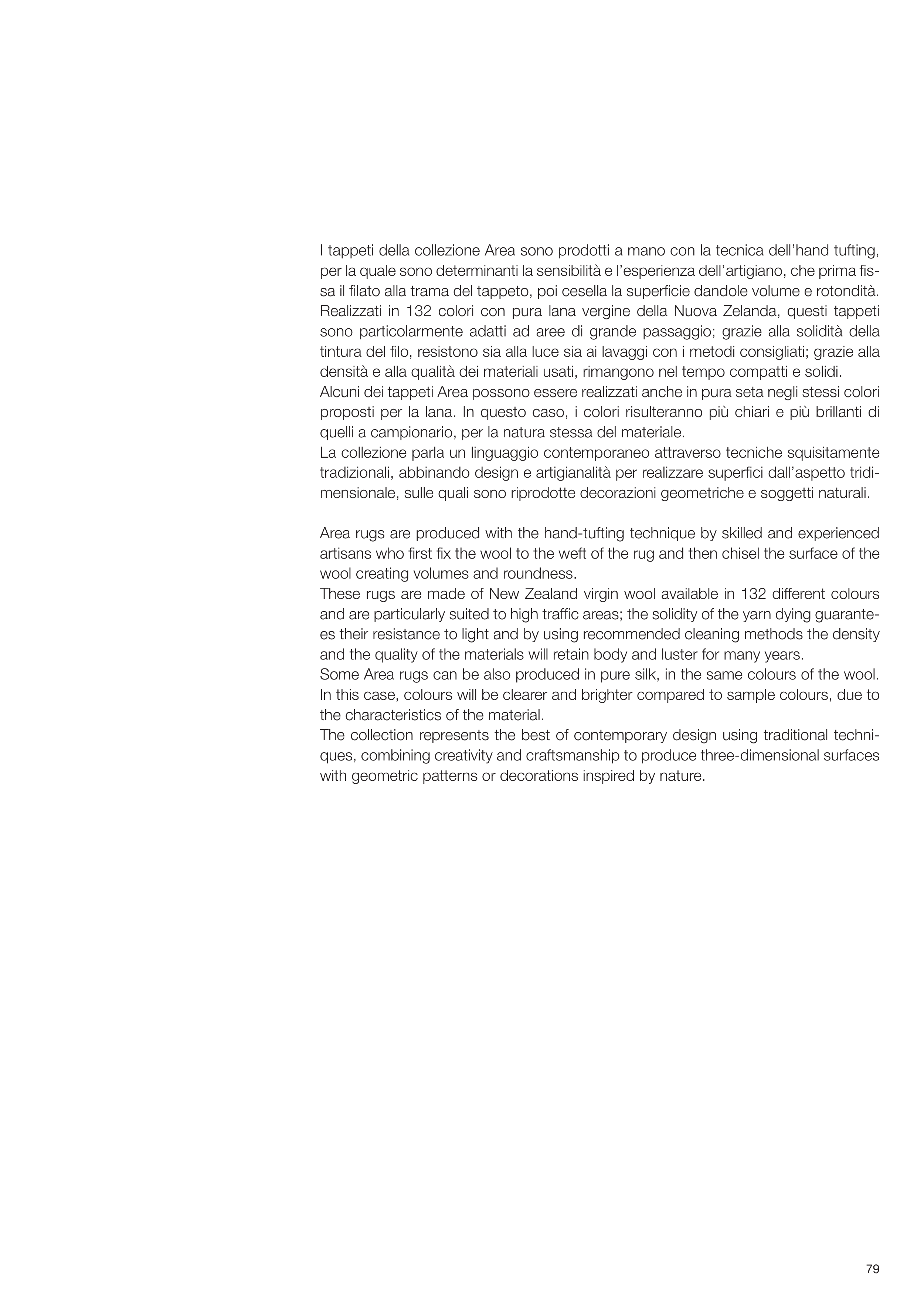 I tappeti della collezione Area sono prodotti a mano con la tecnica dell’hand tufting,