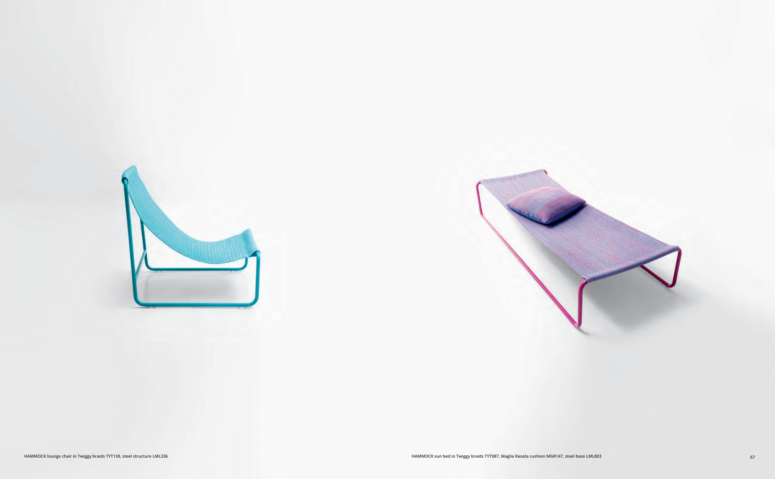 HAMMOCK sun bed in Twiggy braids TYT087, Maglia Rasata cushion MGR147, steel base LML803