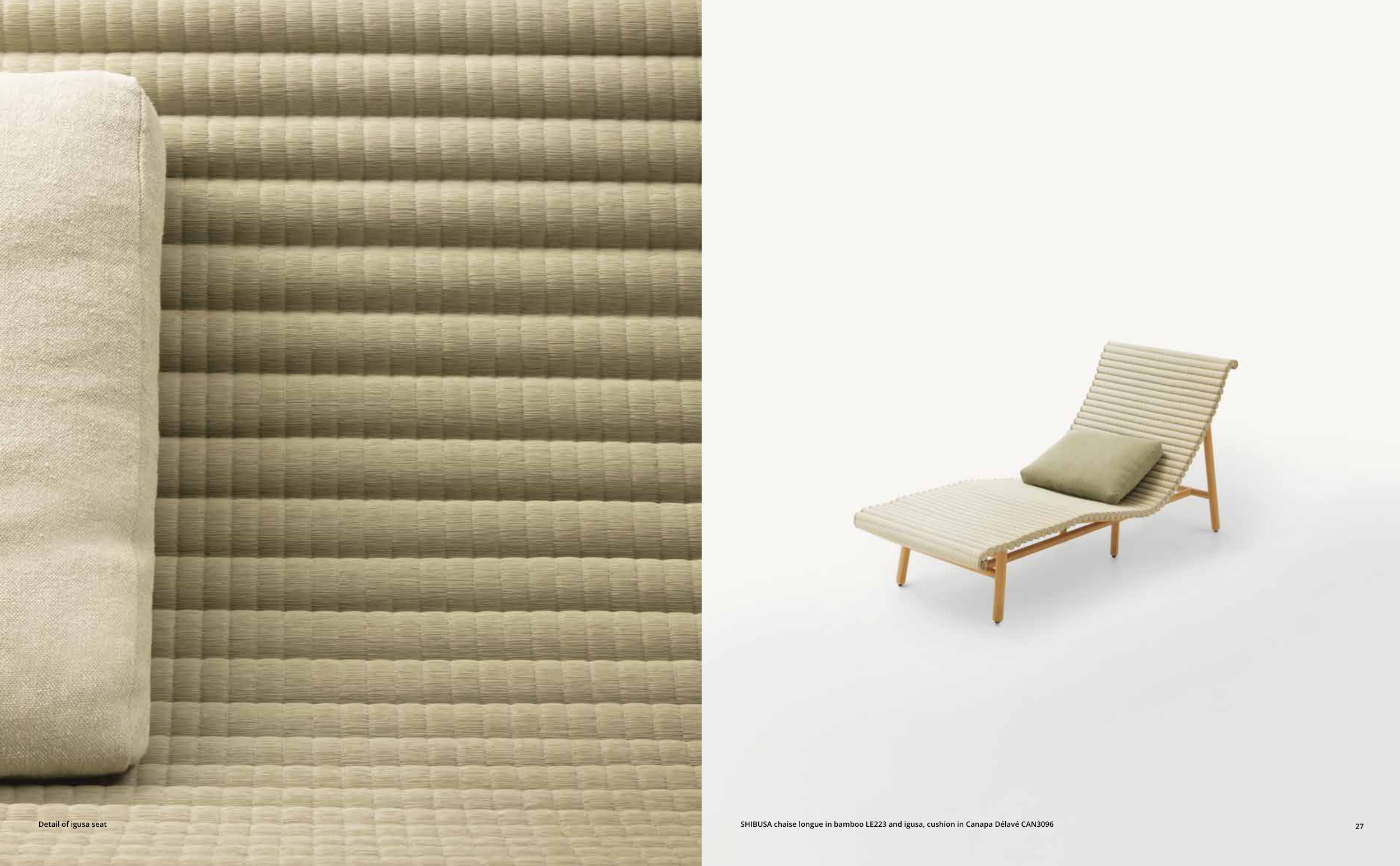 SHIBUSA chaise longue in bamboo LE223 and igusa, cushion in Canapa Délavé CAN3096