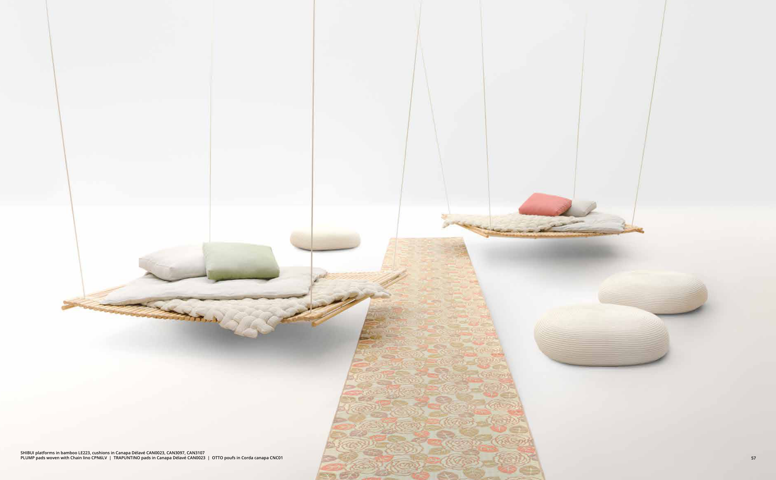 SHIBUI platforms in bamboo LE223, cushions in Canapa Délavé CAN0023, CAN3097, CAN3107