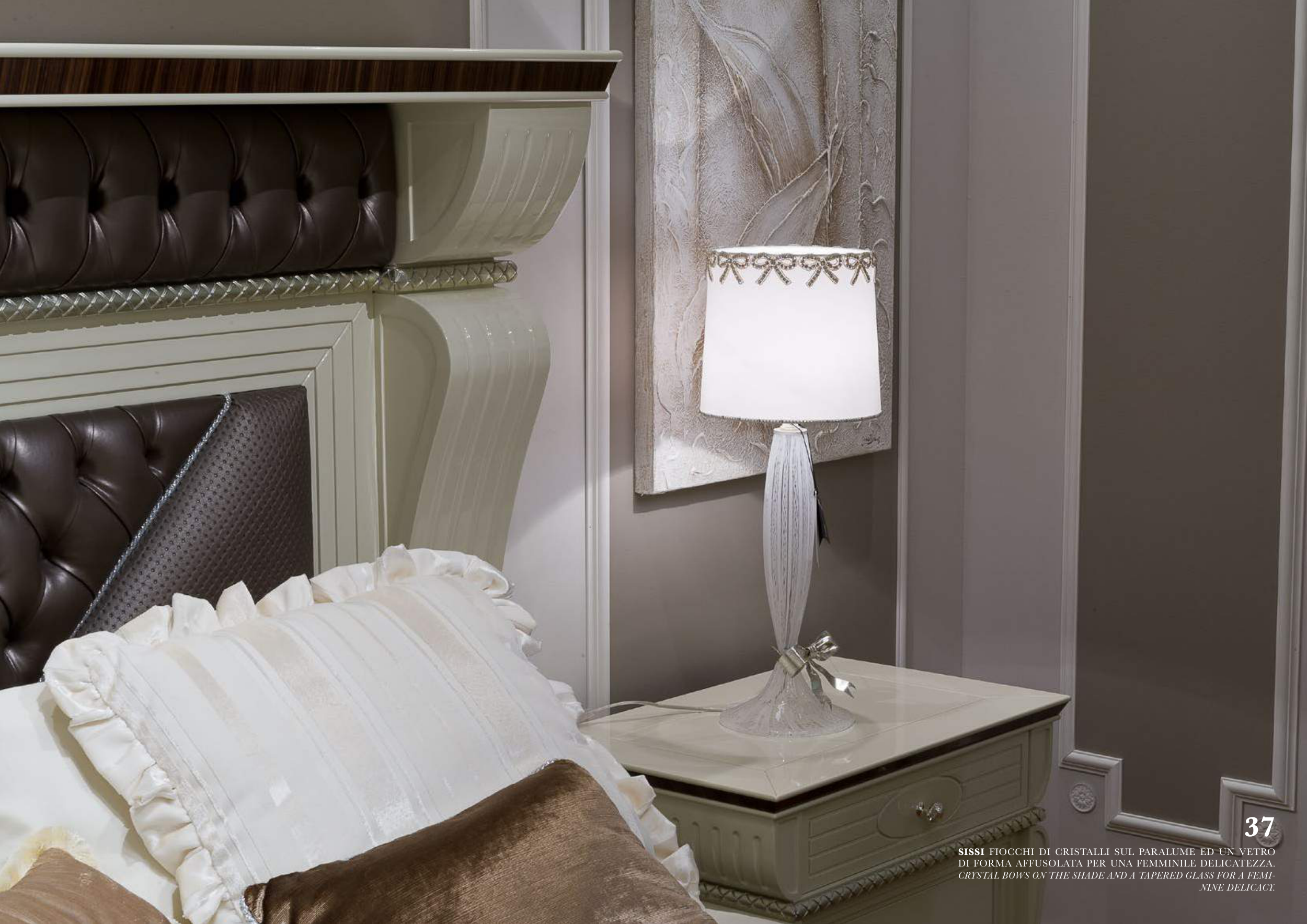 CRYSTAL BOWS ON THE SHADE AND A TAPERED GLASS FOR A FEMI-